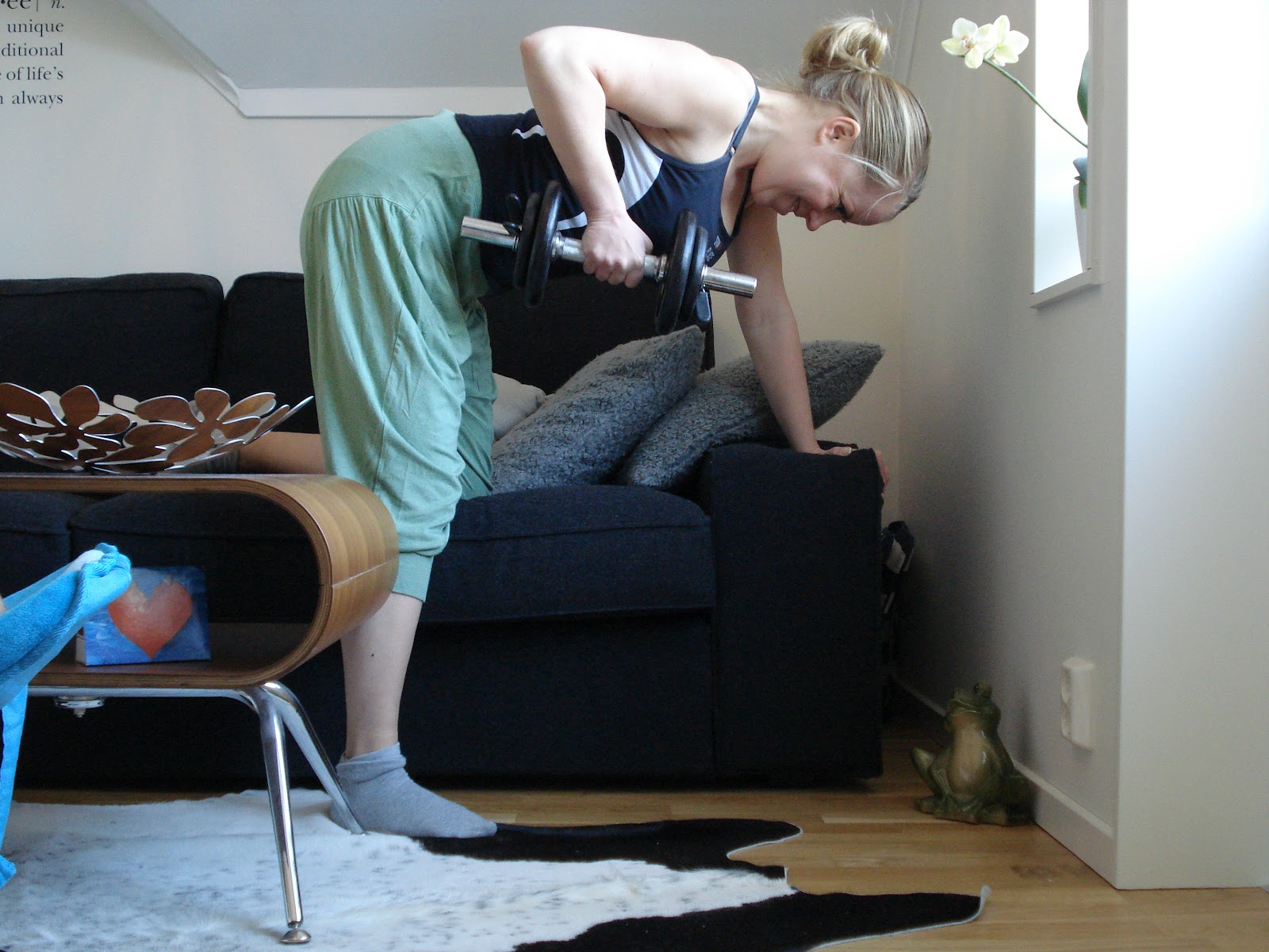 Påfylld med protein i form av ett kokt ägg och kesella tränade jag ett styrketräningspass med hantlar i morse. Jag har inte använt hantlarna så mycket tidigare när jag har tränat hemma, men nu när jag känner att min kropp är redo för lite tyngre styrketräning var det perfekt att ta med dem i styrketräningspasset.