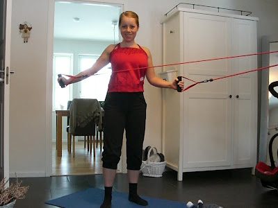 - Här tränar jag med gummiband för första gången efter graviditeten