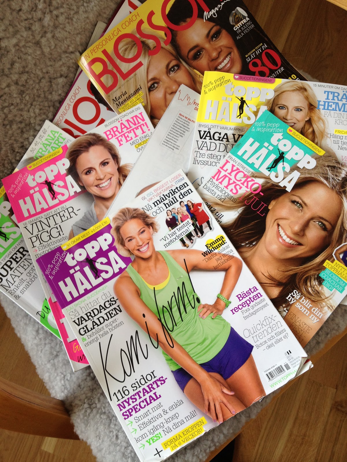 Jag prenumererar sedan länge på träningstidningarna Fitness Magazine och ToppHälsa. När Blossom Magazine fanns hade jag även en prenumeration på denna. För mig är det njutning att slå mig ner i fotöljen eller soffan för att läsa det senaste numret av en av dessa tidningar. Men sedan jag började blogga och i samma veva läsa andra träningsbloggar hinner jag inte riktigt med tidningarna.