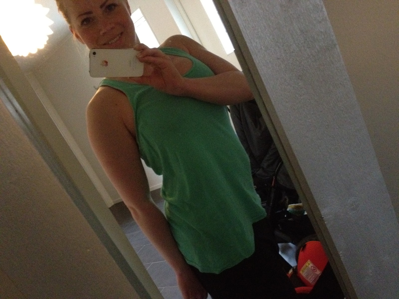 Min träningsouftit under passet var helt vanliga myskläder. Ett slappt linne från American Apparel och pösiga byxor från H&M fungerade mycket bra att träna yoga i.