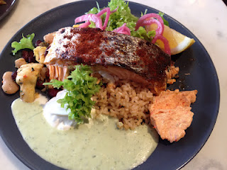 Lunchen åt vi på Bolero på Klarabergsgatan. Jag åt som vanligt en hälsotallrik med lax. När jag har hittat något som jag tycker om har jag svårt för att variera mig.