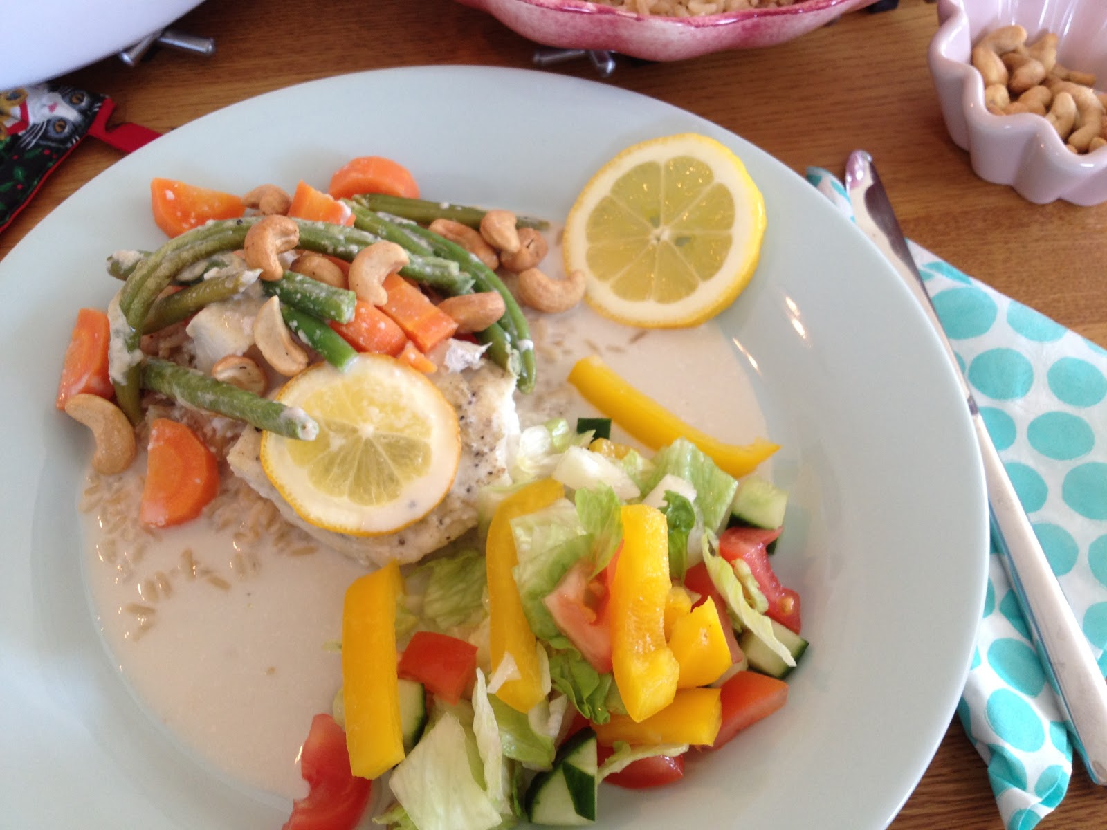 Min mamma är här och hälsar på idag. För en stund sedan åt vi lunch tillsammans. Lunchen jag lagade till var enkel och gick snabbt att göra. Jag passade på att laga något med torsk då min man inte gillar denna fisk speciellt mycket. Torsk med kokosmjölk i ugn fick det bli. Till det fullkornsris, cashewnötter och grönsaker. Smakade mycket bra och blev en portion över som jag kan äta till lunch imorgon.