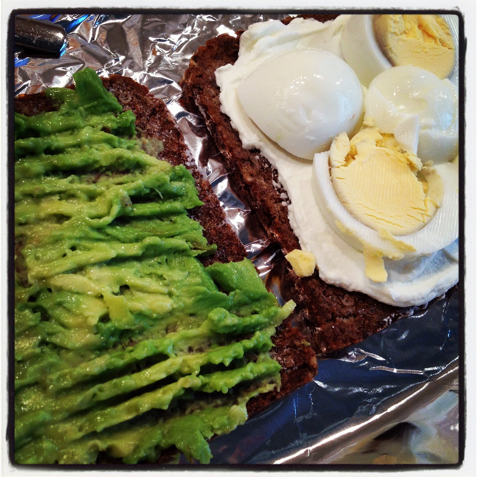 För att spara tid gjorde jag i ordning frukosten igår; fullkornsbröd med kesella, en halv avokado och ett kokt ägg. Den ska jag äta nu innan vi ger oss iväg på dagens äventyr; först ska vi kolla in några förskolor och sedan får vi besök av en kompis och hennes son.