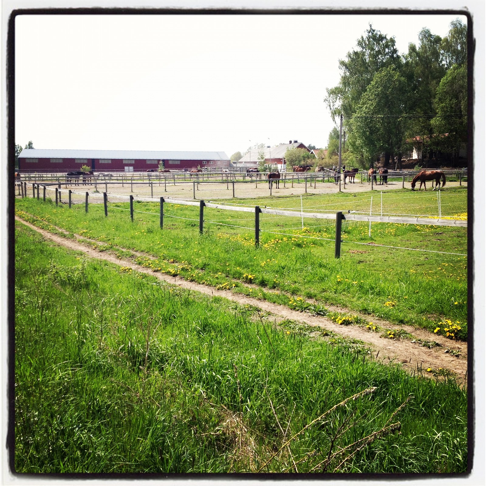 En sådan här varm och solig dag som vi har idag går inte att spendera inomhus, tycker jag. Inte om man inte måste i alla fall. Jag hade ingen lust att hänga i trädgården hela dagen så jag och Wilmer (maken jobbar idag) gav oss ut på en promenad tidigare idag. Vi gick till stallet istället.