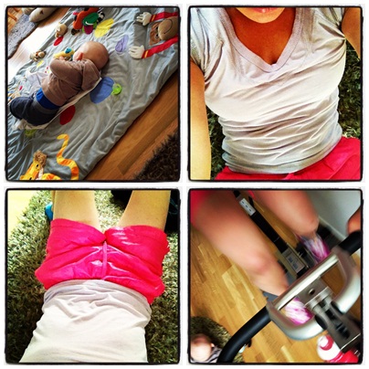 Det blev två stycken Core Express pass så coremusklerna fick sig en rejäl omgång. Wilmer var vaken under andra corepasset så vi tränade båda tillsammans på mattan! Ville få till lite konditionsträning så jag avslutade med 20 minuter på spinningcykeln med en busig och pigg bebis kravlandes på mattan intill.