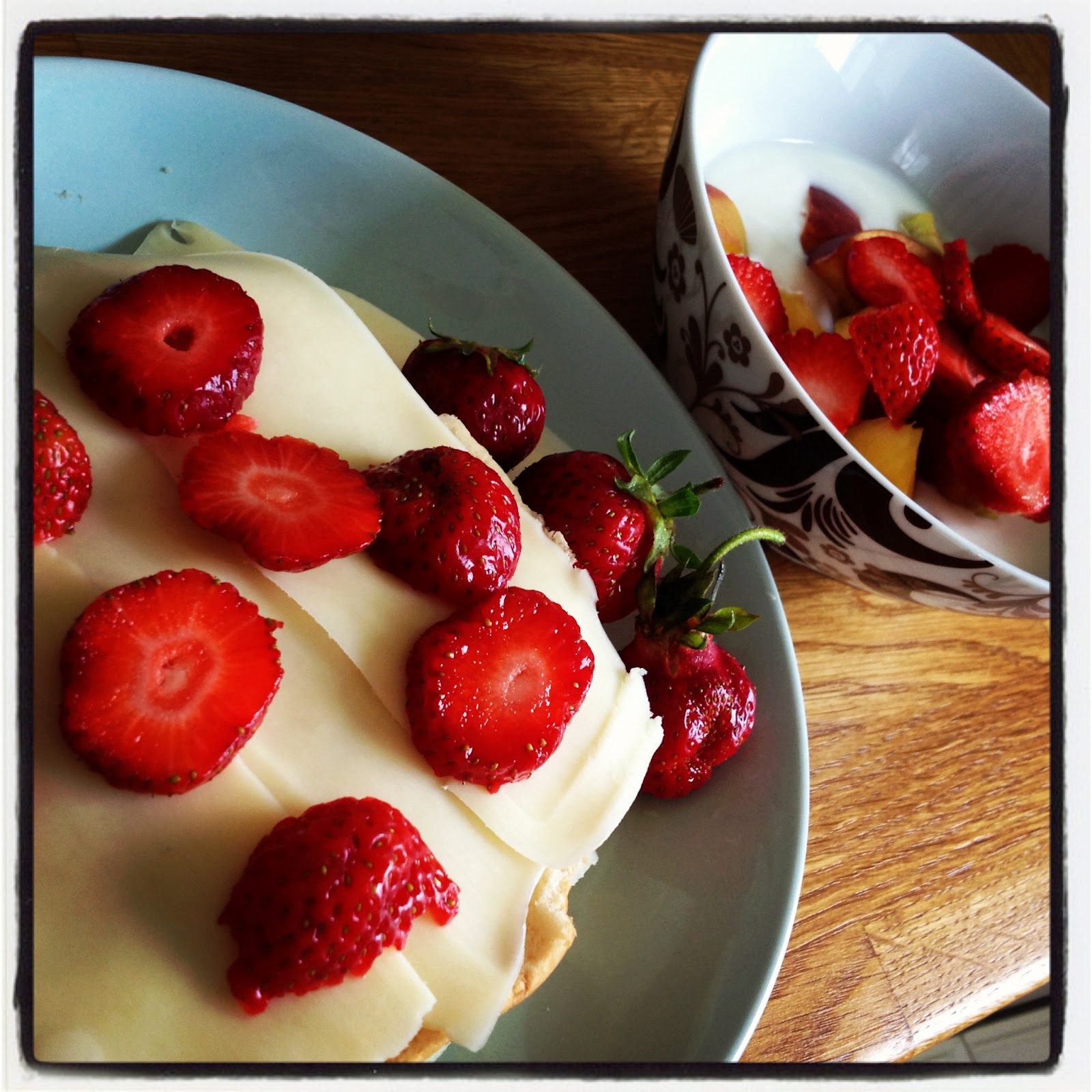 Har ni testat att ha jordgubbar på bröd med smör och ost? Super gott, tycker jag!