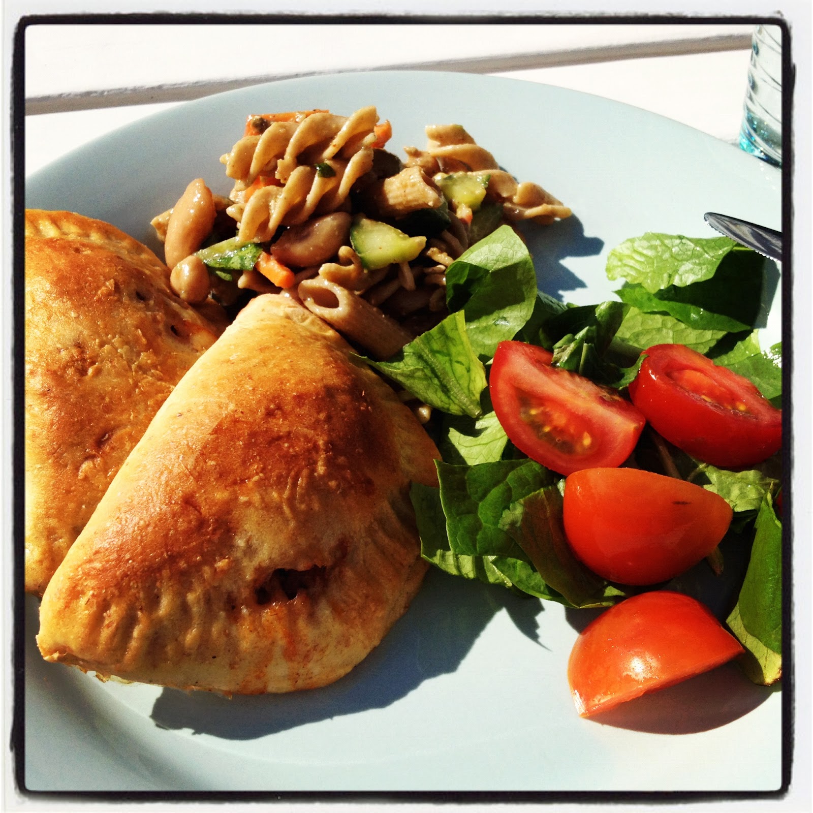 Vi åt pirogerna med lite pastasallad, kvar från dagen innan, bladspenat, sallad och tomat.