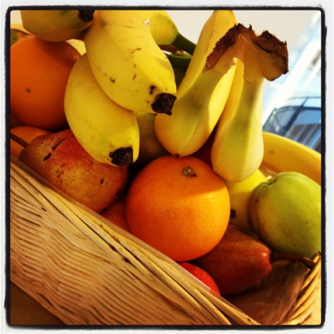 Varje dag ställs det en stor fruktkorg i pentryt på vårt våningsplan. Älskar frukt på jobbet och är glad över att många arbetsplatser faktiskt har det. Som vanligt går bananerna åt snabbast. Måste vara allas favoritfrukt!??