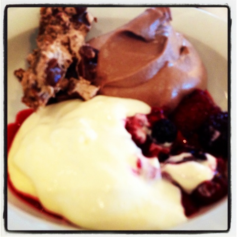 | Jag älskar efterrätter och kunde inte låta bli att fylla på min efterrättstallrik rejält. Men det var egentligen bara chokladmoussen som var god, enligt mig. |