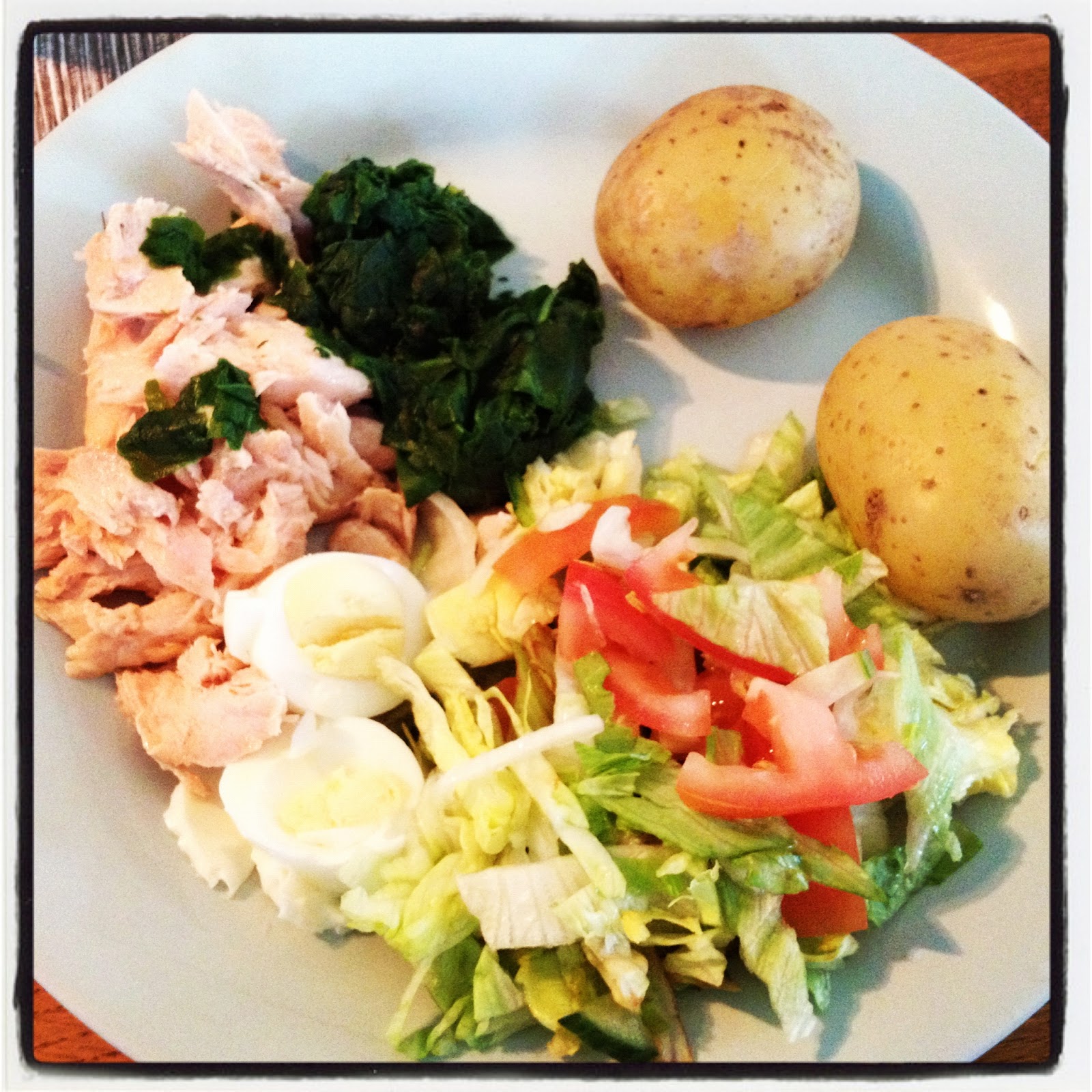 Kvällens middag bjöd på varmrökt lax. Inte så ofta jag köper hem det så därför njuter jag extra mycket av att äta det. För att få bra återhämtning efter transportlöpningen hem från jobbet och för att orka springa tidigt imorgon bitti åt jag kolhydrater i form av kokt potatis till laxen. Självklart blev det mycket grönsaker, dessutom spenat och kokt ägg. Underbart!