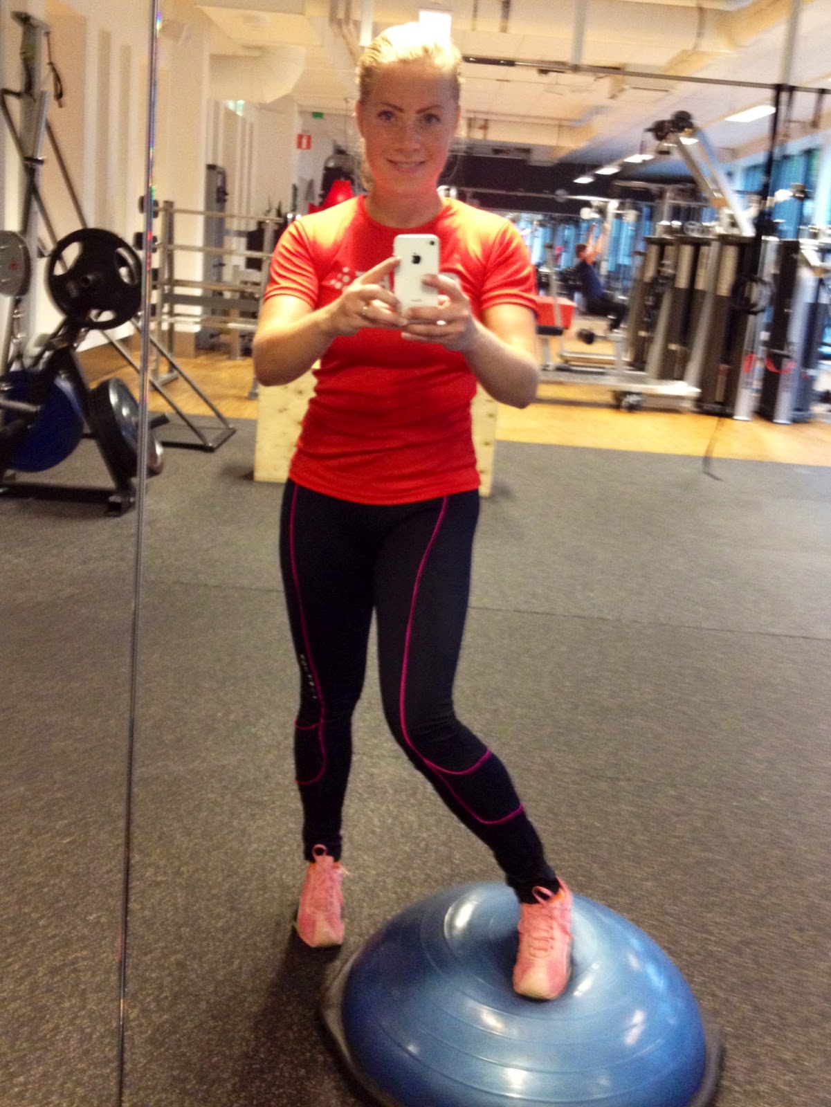 Jag valde att göra några funktionella övningar med bosuboll. Detta för att också träna balans och bål.