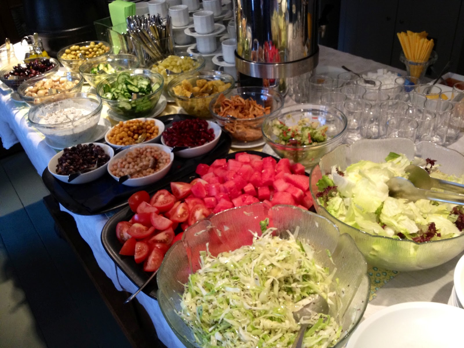 2. Vilken himla härlig salladsbuffé! Jag gillar när matställen gör det lätt för alla att plocka på sig av lite nyttiga tillbehör. Det är något vi borde ta efter.
