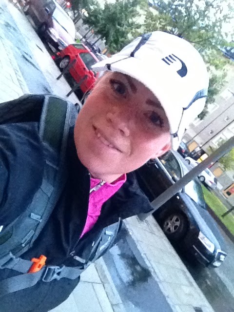 På vägen mellan tåget och kontoret sedan krävdes det inte att jag passade någon exakt tid. Men jag försökte ändå springa så snabbt som möjligt. Lyckades ändå inte med att springa den sträckan snabbare än igår. Kanske var det rödljusens och regnets fel? Eller så var jag helt enkelt inte lika snabb i benen som jag var igår på den sträckan.