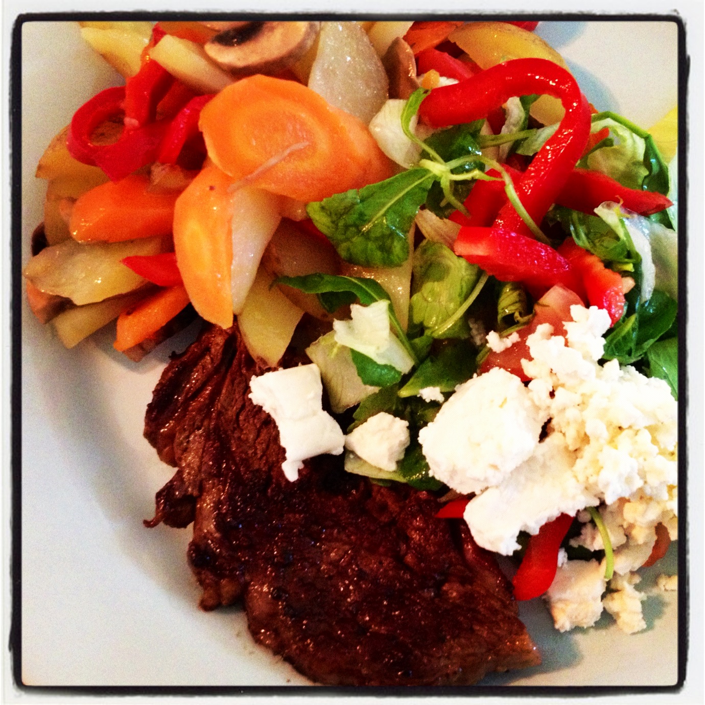 Helgerna är väl helt enkelt tiden i veckan när vi känner att vi faktiskt har tid att stå i köket och kocka?! När inte jobbet, barnens fritidsaktiviteter eller alla kurser är i vägen. Även jag gör oftast lite lyxigare mat till helgen, medan veckorna mer är ”vardagsmat”. Entrecôte och ugnsgrönsaker som ni åt i helgen, MUMS! 🙂 Ha en härlig tisdag!/ Sonja