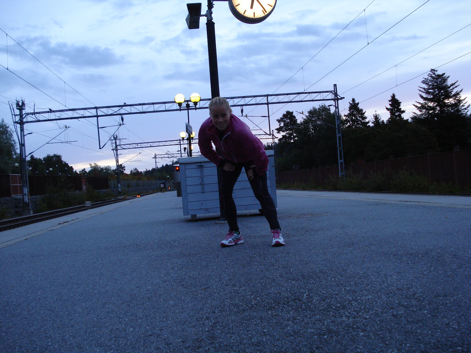 • 06.21: Har ingen lust att bara stå och vänta på nästa tåg som ska gå om 14 minuter. Så jag gör armhävningar (20+14+20 stycken) och stretchar benen. Får några förvånade blickar från andra på perrongen…