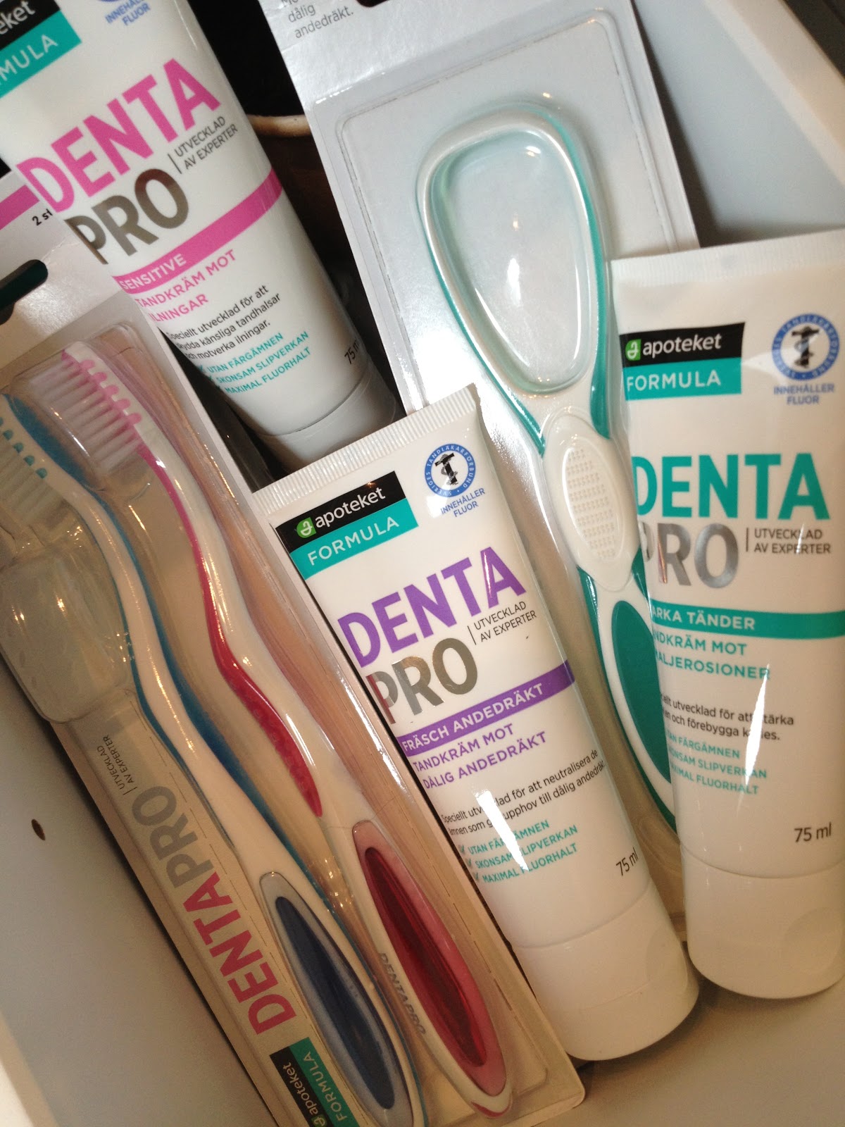 Apropå tandhälsa så har Apoteket börjat sälja produkter i det temat. Där finns tandborstar, tungskrapor, munskölj, tandkräm och tabletter som ska ge en fräsch andedräkt i serien Dentapro. Här kan du läsa mer om hur du ska ta hand om dina tänder.