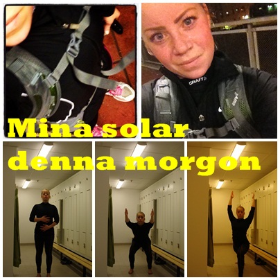 Jag fick till ytterligare några solar i mörkret när jag hade kommit fram till jobbet. Dessa i form av ett kort yogapass med framför allt solhälsningar i omklädningsrummet på jobbet. Kände att jag behövde få sträcka ut och tänja kroppen!
