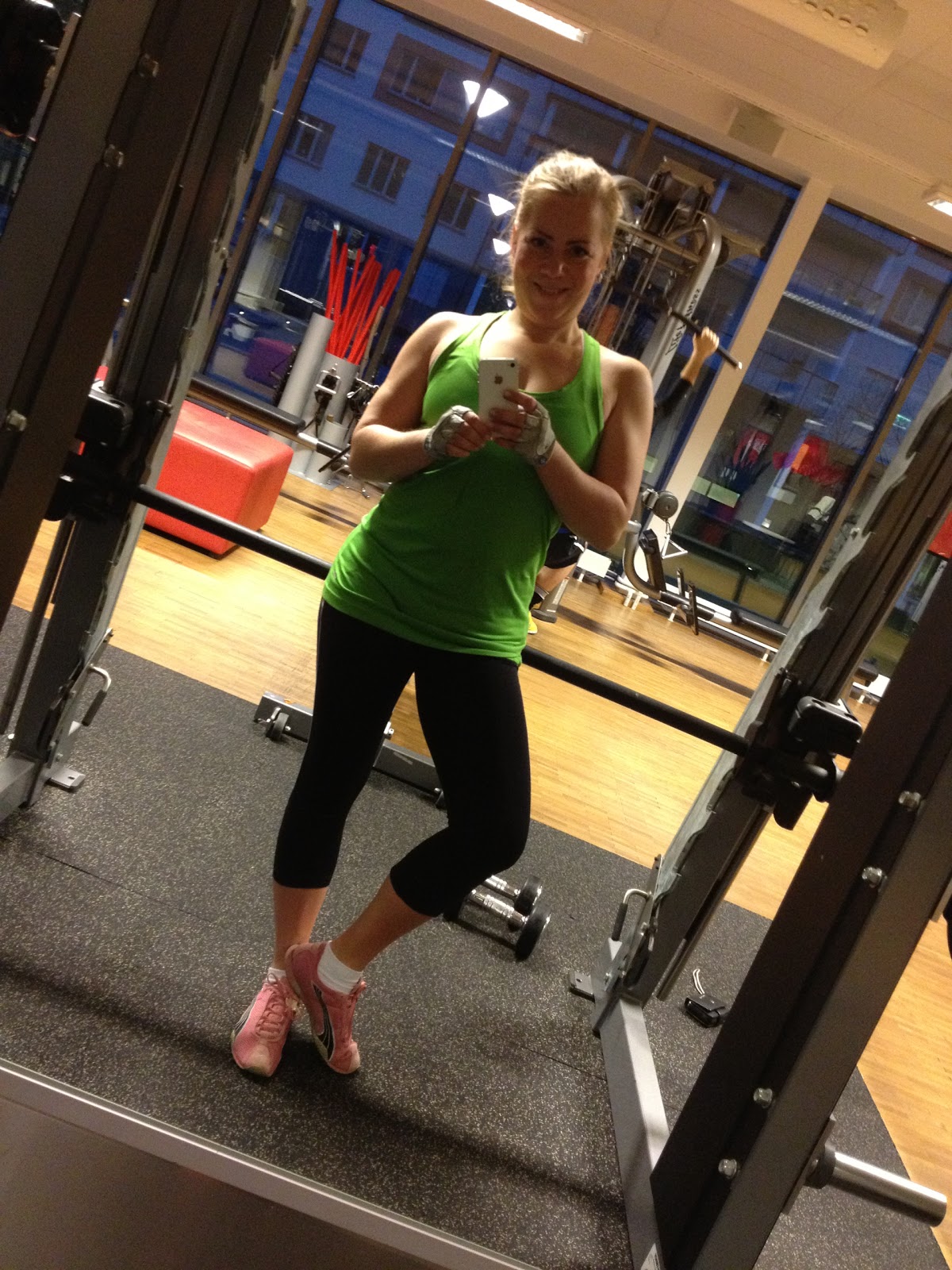 Denna morgon var jag dock inte lika överförtjust åt att springa sträckan till gymmet. Hade nämligen med mig mer packning än vanligt. Med en ryggsäck på ryggen, en träningspåse på axeln och en flaska i handen joggade jag iväg. Det blev verkligen ett joggtempo idag, men med all packning fick jag upp värmen mer än vanligt och kom fram till gymmet ordentligt uppvärmd.