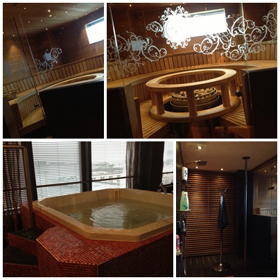 Finnarna kan verkligen det här med att bada bastu. Den bastu vi var i idag var riktigt snygg med sin cirkulära form och bastuaggrigatet i mitten. I den fick det plats riktigt många även om vi bara var ett par stycken när jag satt i den. Vi delade nämligen upp oss tjejer och killar. Tjejerna, som inte är så många, fick börja med att bada bastu och bubbelpool.