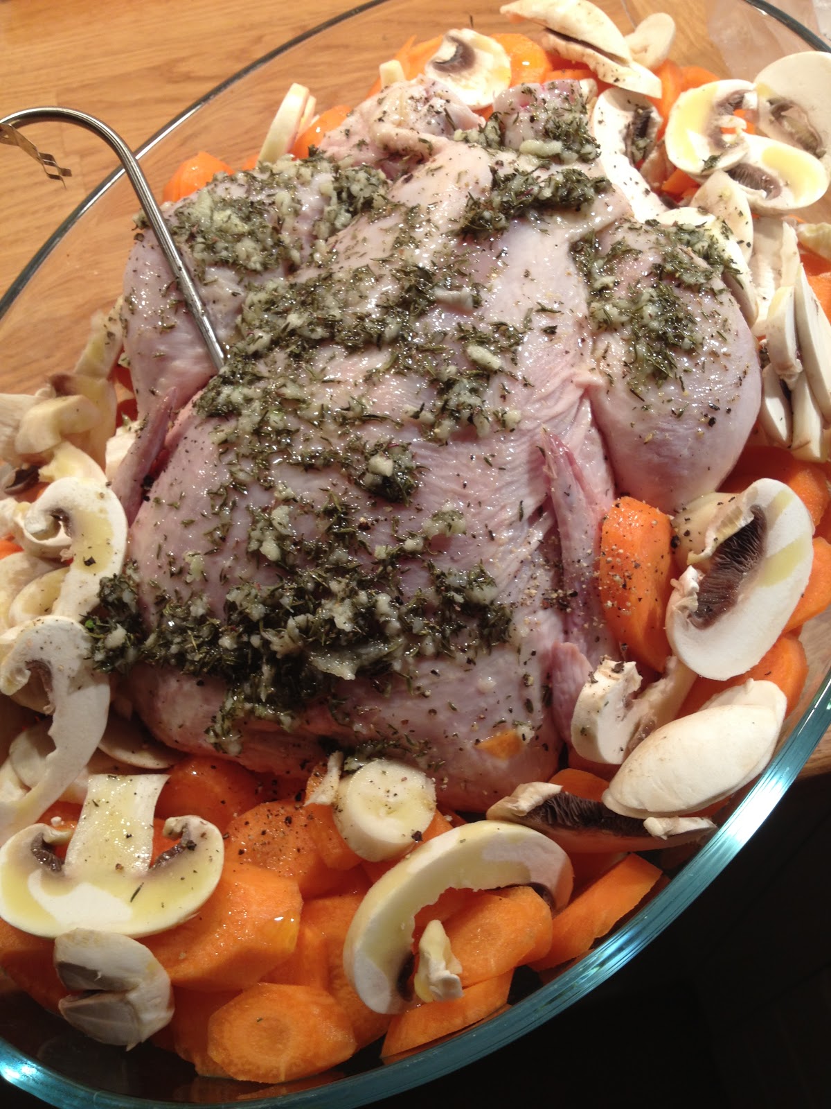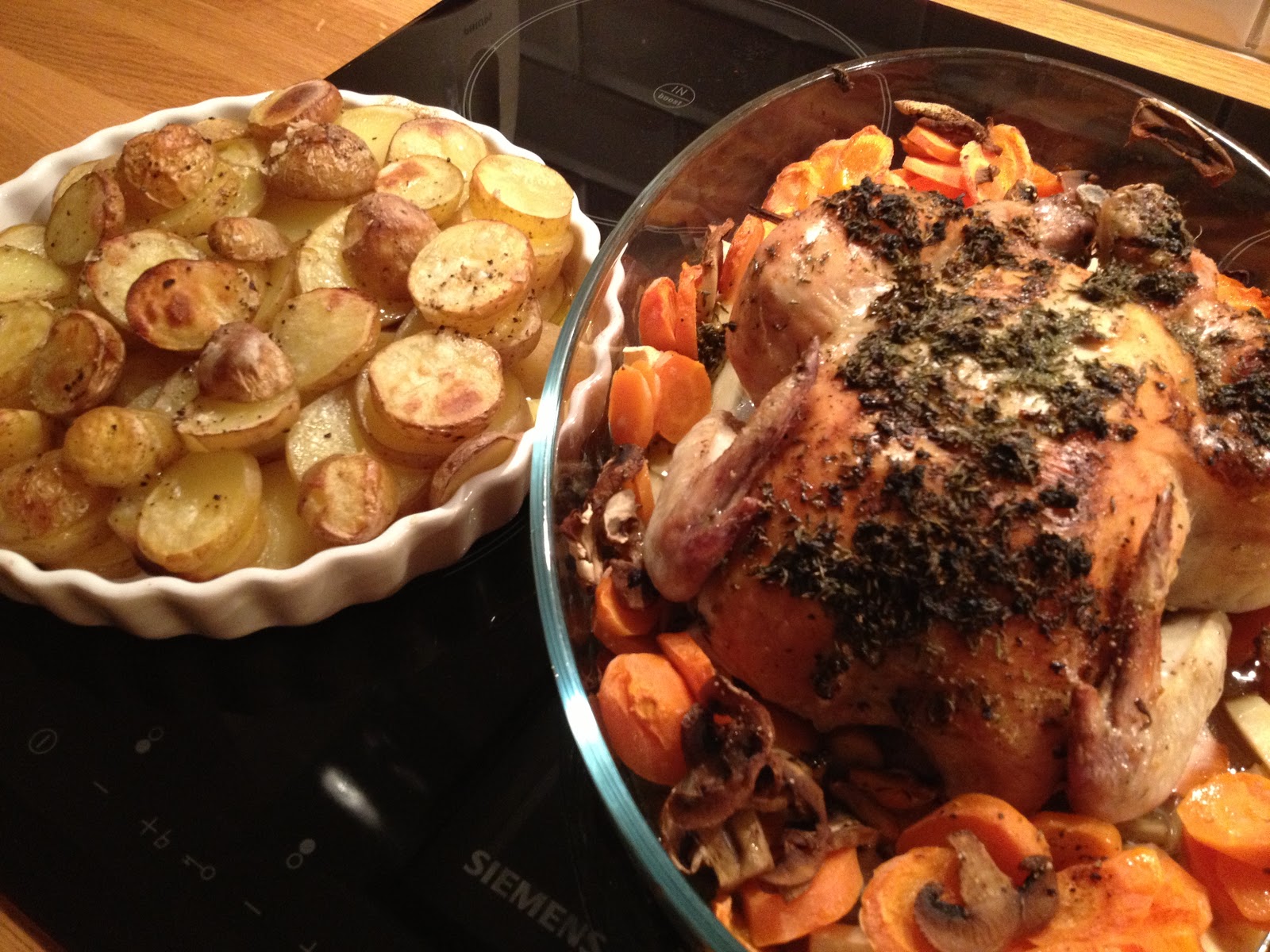 Typiskt mig att ställa mig och laga mat i flera timmar på kvällen efter jobbet fastän jag egentligen är väldigt trött. Så var det för mig igår kväll. Jag hade planerat att laga marinerad hel kyckling i ugn med ugnsrostade grönsaker och potatis samt göra en aioli. Tänkte att det borde inte ta så lång tid, men det gjorde det uppenbarligen. Detta eftersom vi har en liten son på snart ett år som ville ha min uppmärksamhet under större delen av tiden. (Gullunge!)