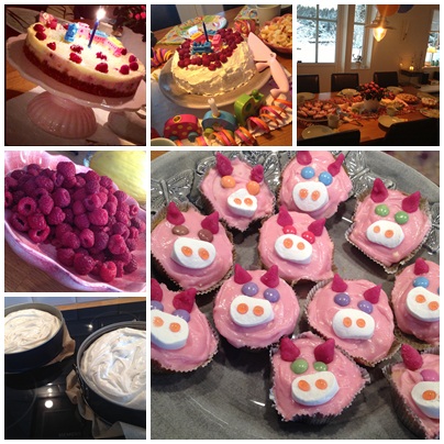 Jag bakade en hel del till kalasen i helgen. Bland annat denna goda halloncheesecake. Jag gjorde även cup cakes i form av grisar och en maränggräddtårta. Wilmer fick smaka av tårtan för första gången i sitt liv. Han åt bara några bitar av den, men det räckte för att han på lördag kvällen skulle vara helt omöjlig att få att somna. Vi försökte matta honom i över en timme innan vi gav upp. Sedan sprang han runt, hög på socker, och var helt galet pigg fram tills 22.30 när han till slut somnade. Socker är uppenbarligen inte bra för så små kroppar.