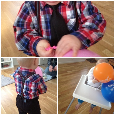 | Wilmer finklädd på sitt kalas. Ballongerna var roligast! |