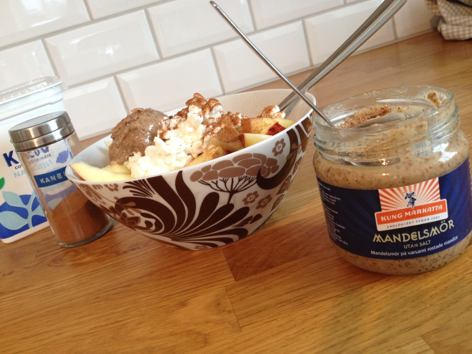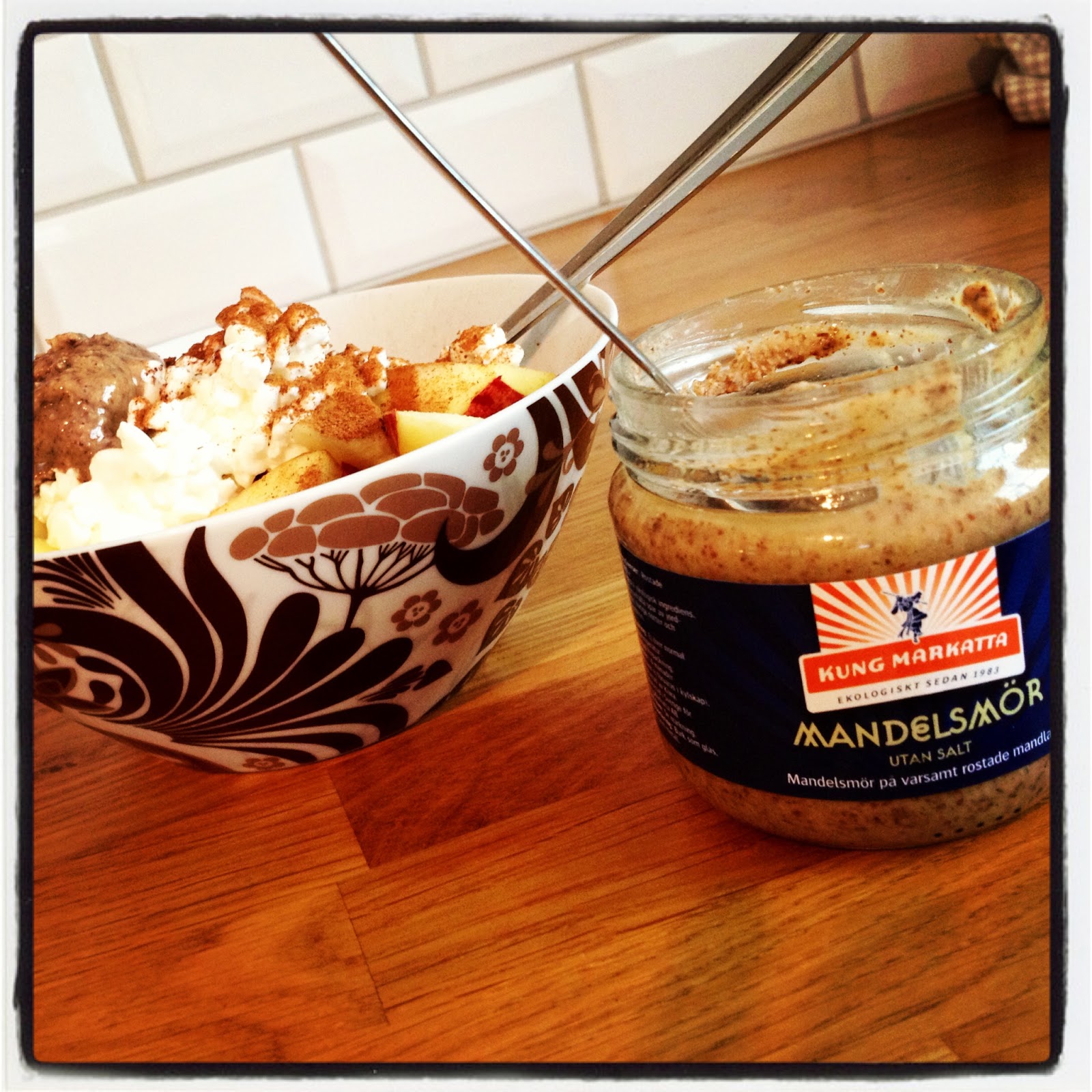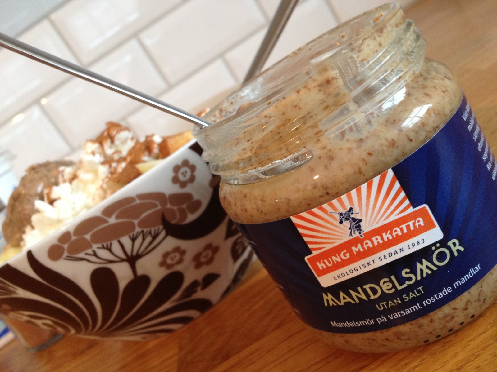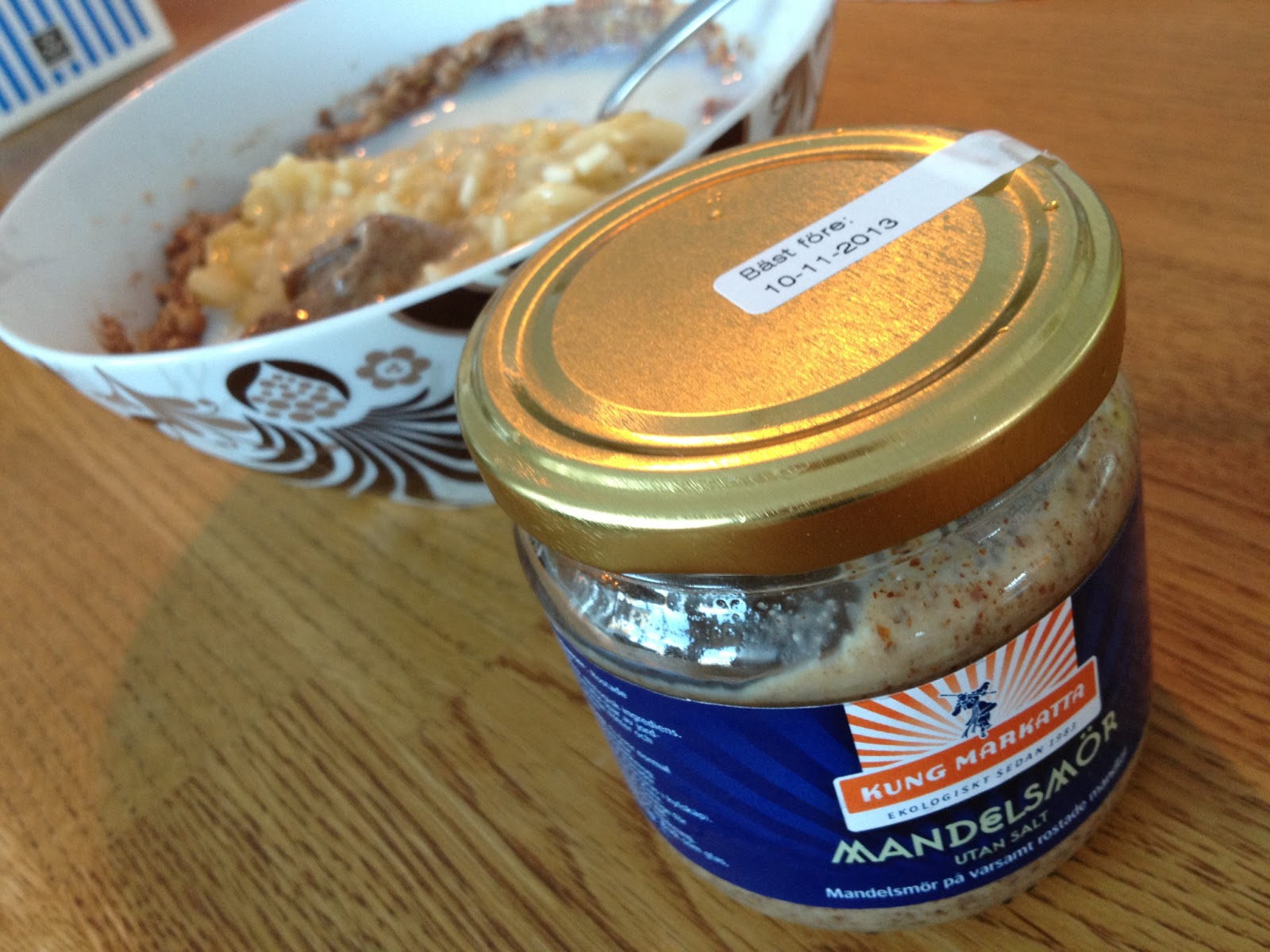 Kung Markatta tipsar om att man kan ha mandelsmöret i efterrätter. Det har jag inte testat ännu. Däremot har jag haft det på min havregrynsgröt och tillsammans med frukt och keso.