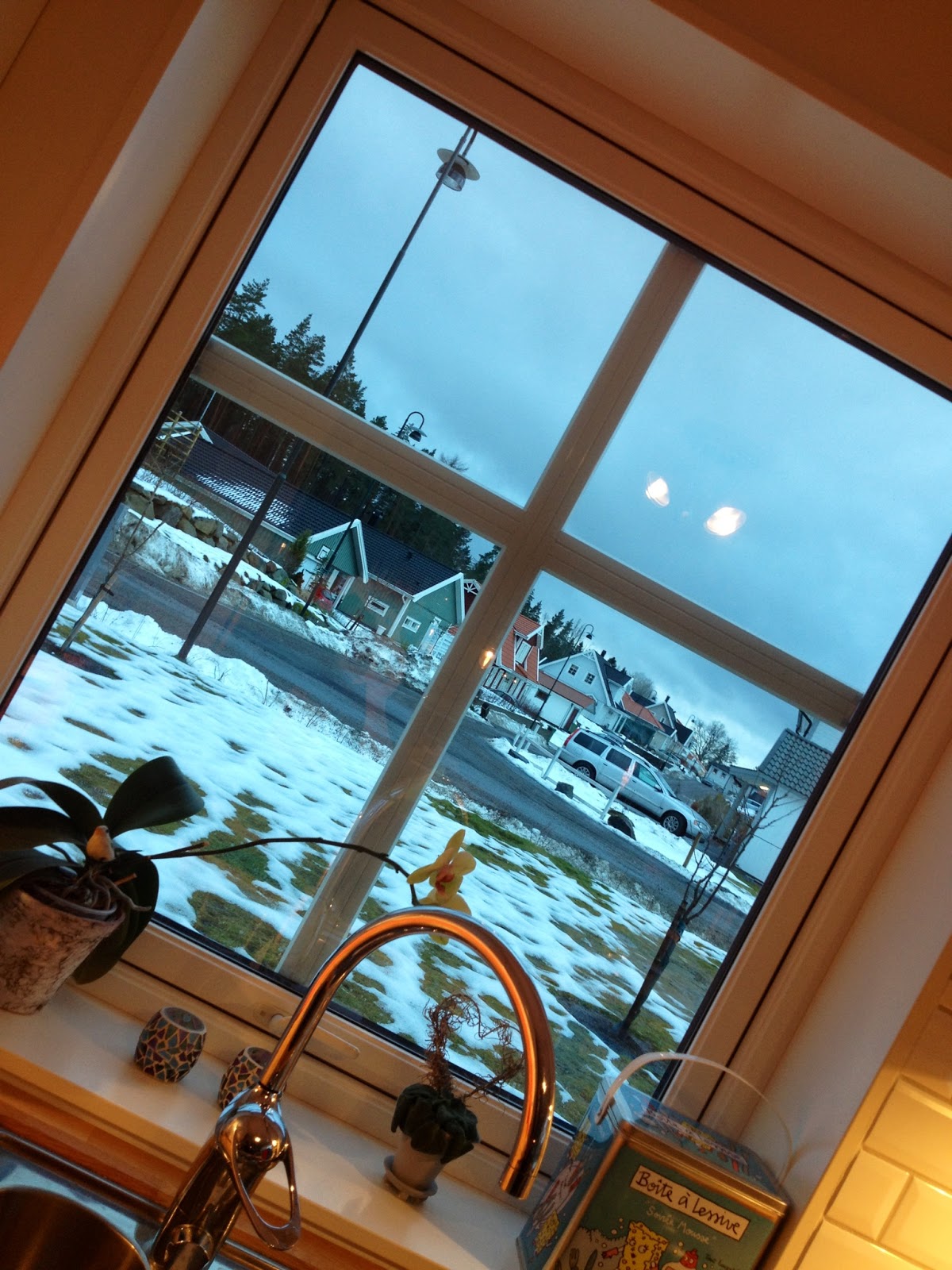 Bild: När jag tittar ut idag ser det inte särskilt roligt ut. Grå himmel, en gräsmatta som visar sig under snön och slask på vägarna. Enda fördelen är att väglaget inte innebär några som helst problem för löpning eller cykling. Men jag hoppas trots allt på att vi får mer snö snart!