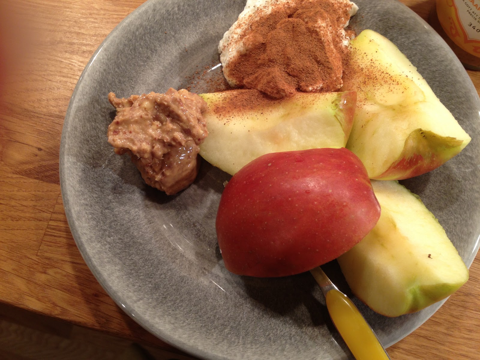 Jag har precis börjat äta jordnötssmör. Har haft det till äpple med kanel och på riskakor med banan och kanel. Riktigt gott. 🙂