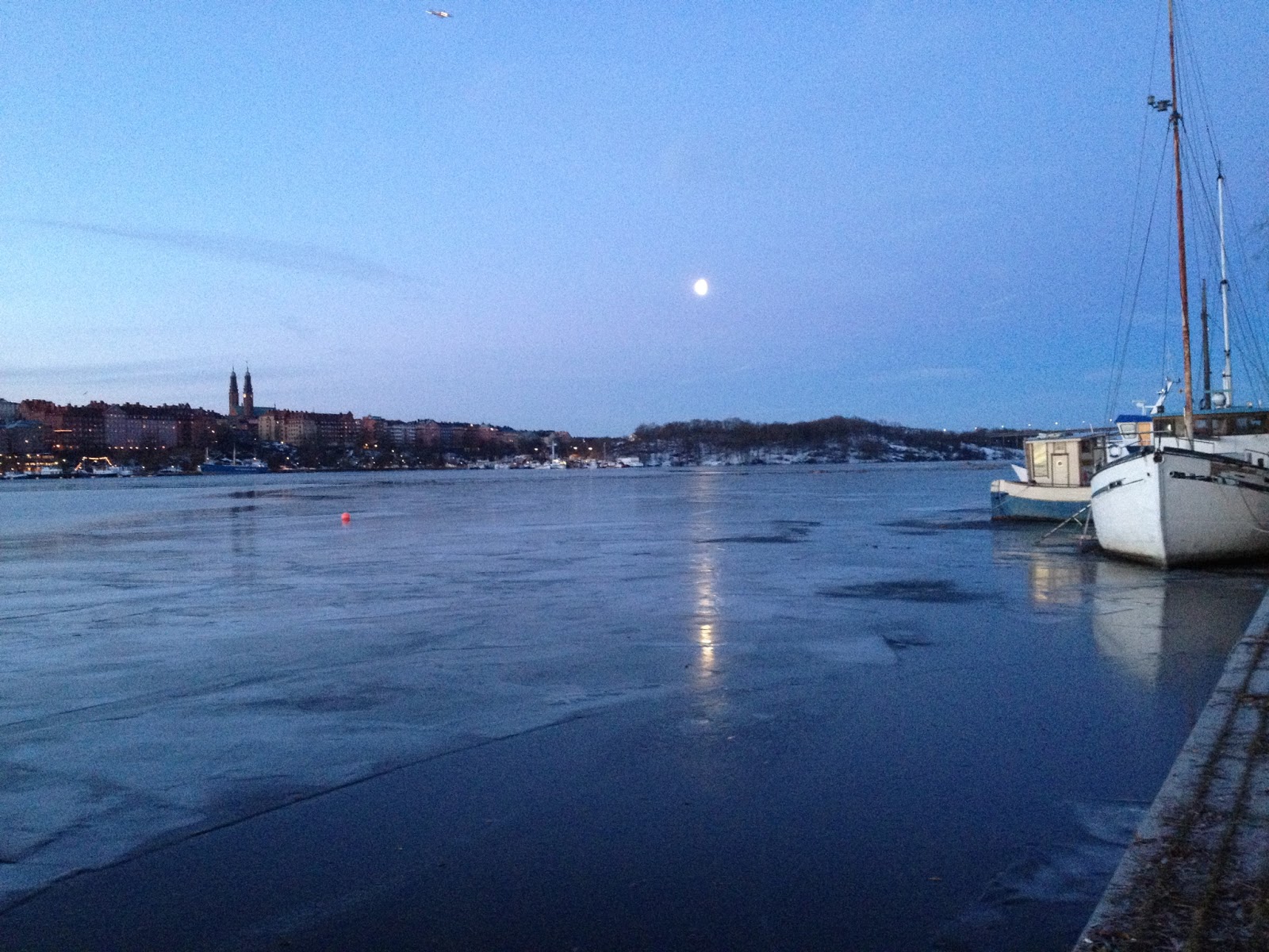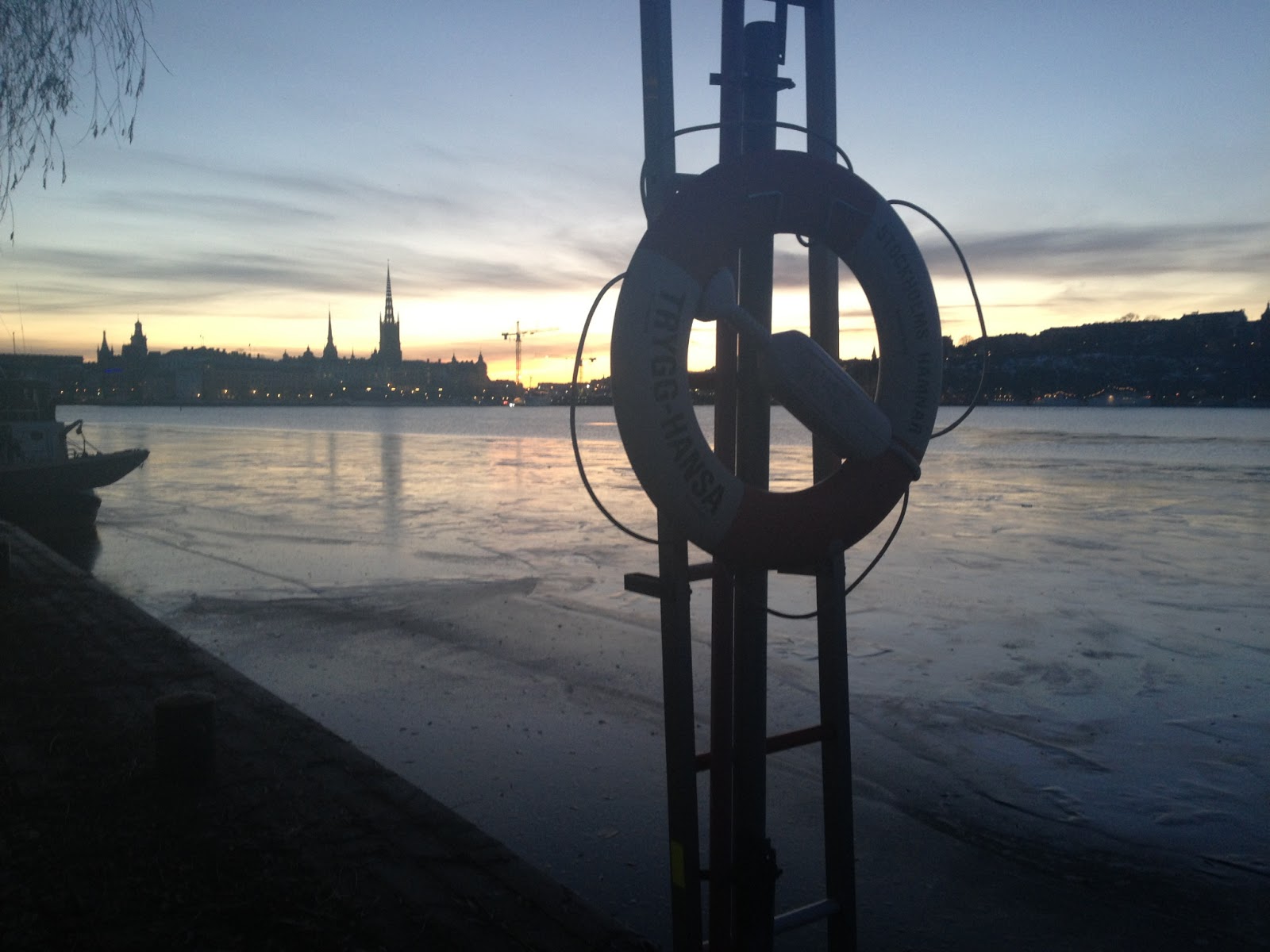 Det var fint att springa längs med vattnet och njuta av den vackra staden som vaknade. Två saker var dock negativa med rundan. Det var bitvis väldigt halt och jag hade tagit av mig broddarna när jag kom in till stan. Inte smart av mig…. Var tvungen att gå i en nedförsbacke för att inte ramla. Jag lyckades dessutom villa bort mig lite på slutet så jag tror inte att det blev den traditionella Kungsholmen-runt-rundan för mig.