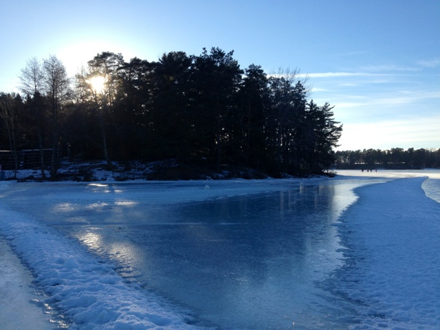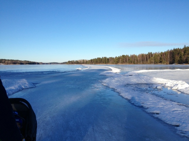 Promenaden inkluderade några steg på isen på den genomfrusna sjön. Trots all is och snö fick jag sköna vårkänslor i kroppen idag. Fåglarna kvittrade och snön smälte i solen. Underbart!