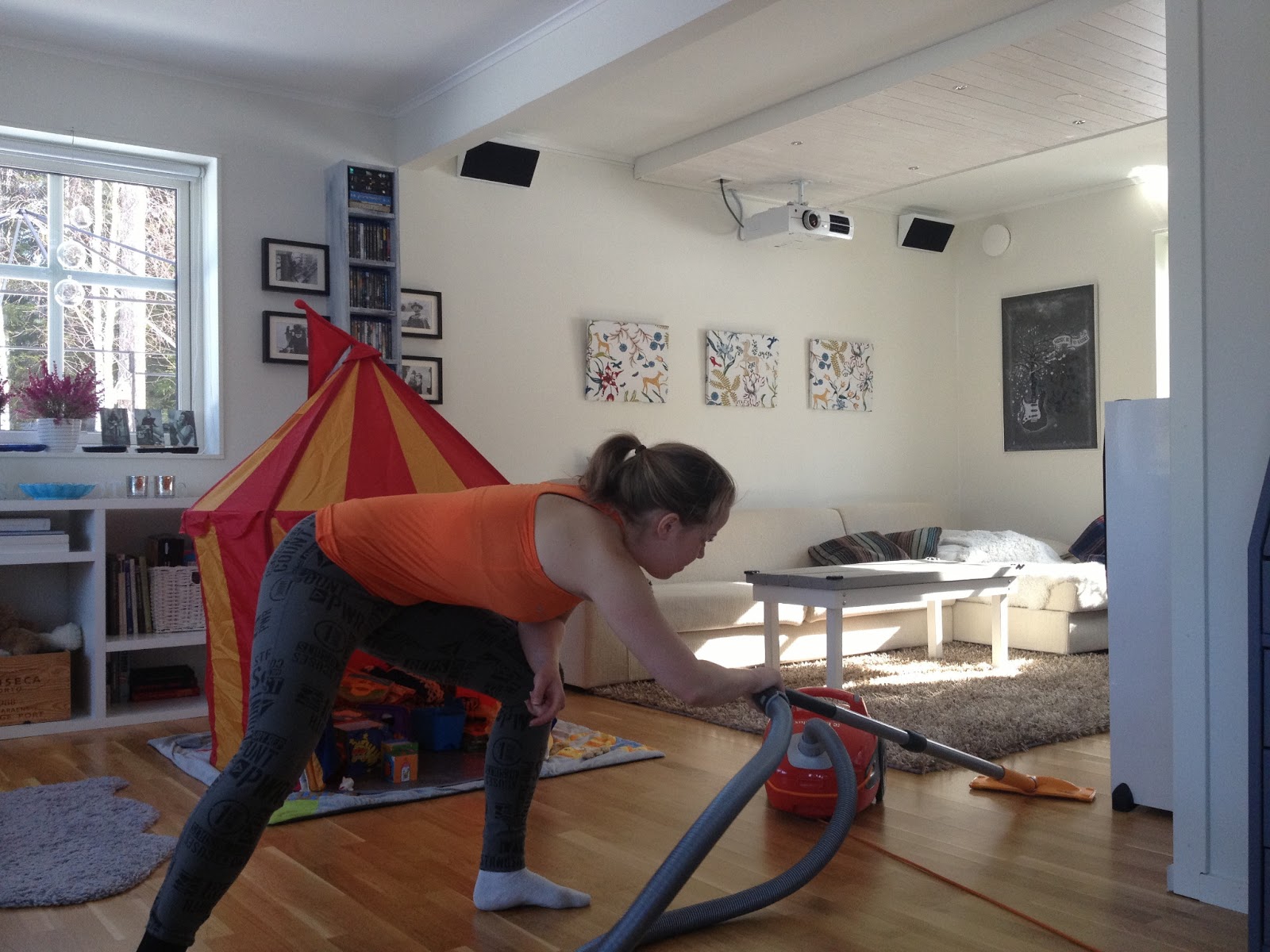 När jag hade tränat klart passade jag på att dammsuga innan jag hoppade in i duschen. Att dammsuga är bland det roligaste Wilmer vet. Han tittar intresserat på och hjälper även till en del. Och ett snabbt dammsugarpass blir man lite svettig av så lika bra att spara på duschen lite då.