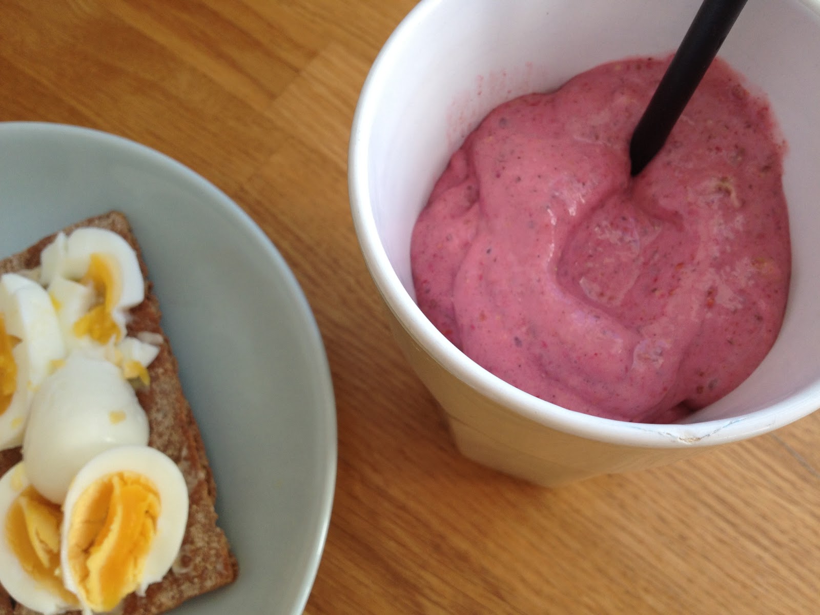 Jag åt knäckebröd med kokt ägg till detta. Vilken god, mättande och härlig frukost!