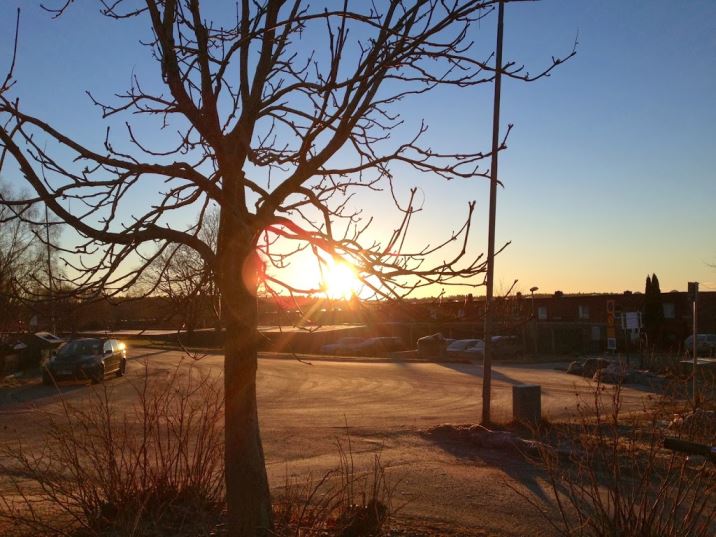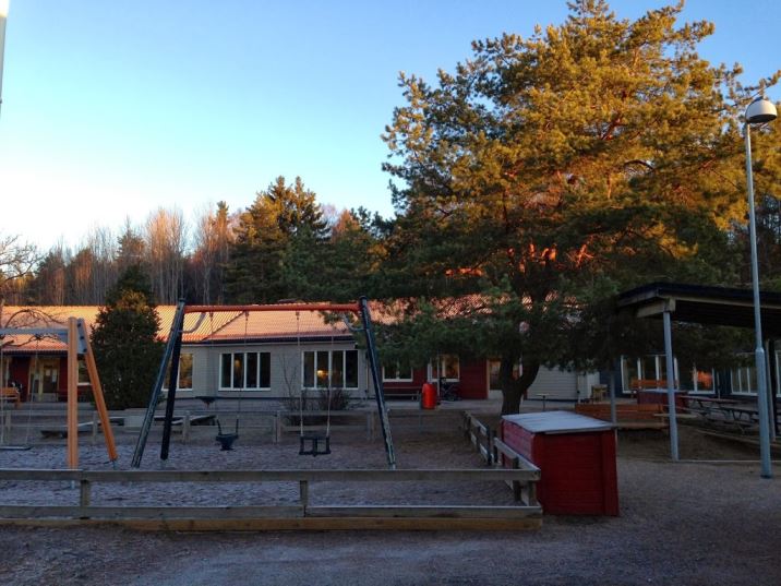 Utanför förskolan sken solen vackert. Ser ut att bli ännu en fin dag!