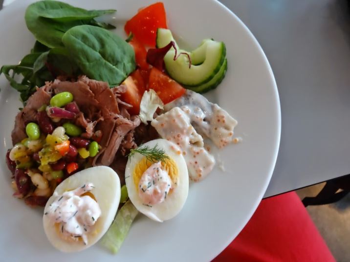 Jag brukar oftast gilla förrättsmaten och efterrättsbuffén bäst när jag är på bruncher eller bufféer och så var det även denna gång. Bland förrättsmaten fanns det mycket gott att välja på som ägghalvor, lax (vilket jag tyvärr inte kan äta nu. Längtar!), sill, rostbiff, grönsaker, sallader och annat gott.