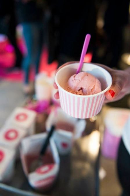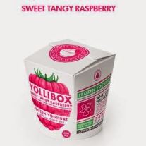 På tal om hallon och glass smakade jag en god yoghurtglass på eventet i måndags. Yollibox säljer frozen yoghurt i papperslådor och den med smaken hallon var både fräsch och god. Att den innehåller yoghurt istället för grädde gör att den är fettsnål. Den innehåller bara naturliga råvaror, men är sötad med råsocker och fruktos. Så helt sockerfri är den inte.