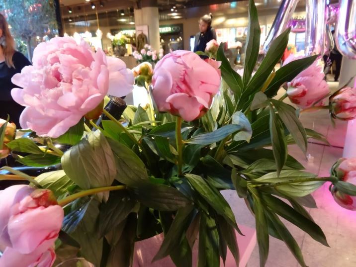 Temat för kvällen och för studion var helt klart rosa. Tjejig som jag är tyckte jag det var väldigt fint med alla pioner, andra rosa blommor och draperier med fåglar. Men framför allt var det trevligt att göra något lite annorlunda efter jobbet!