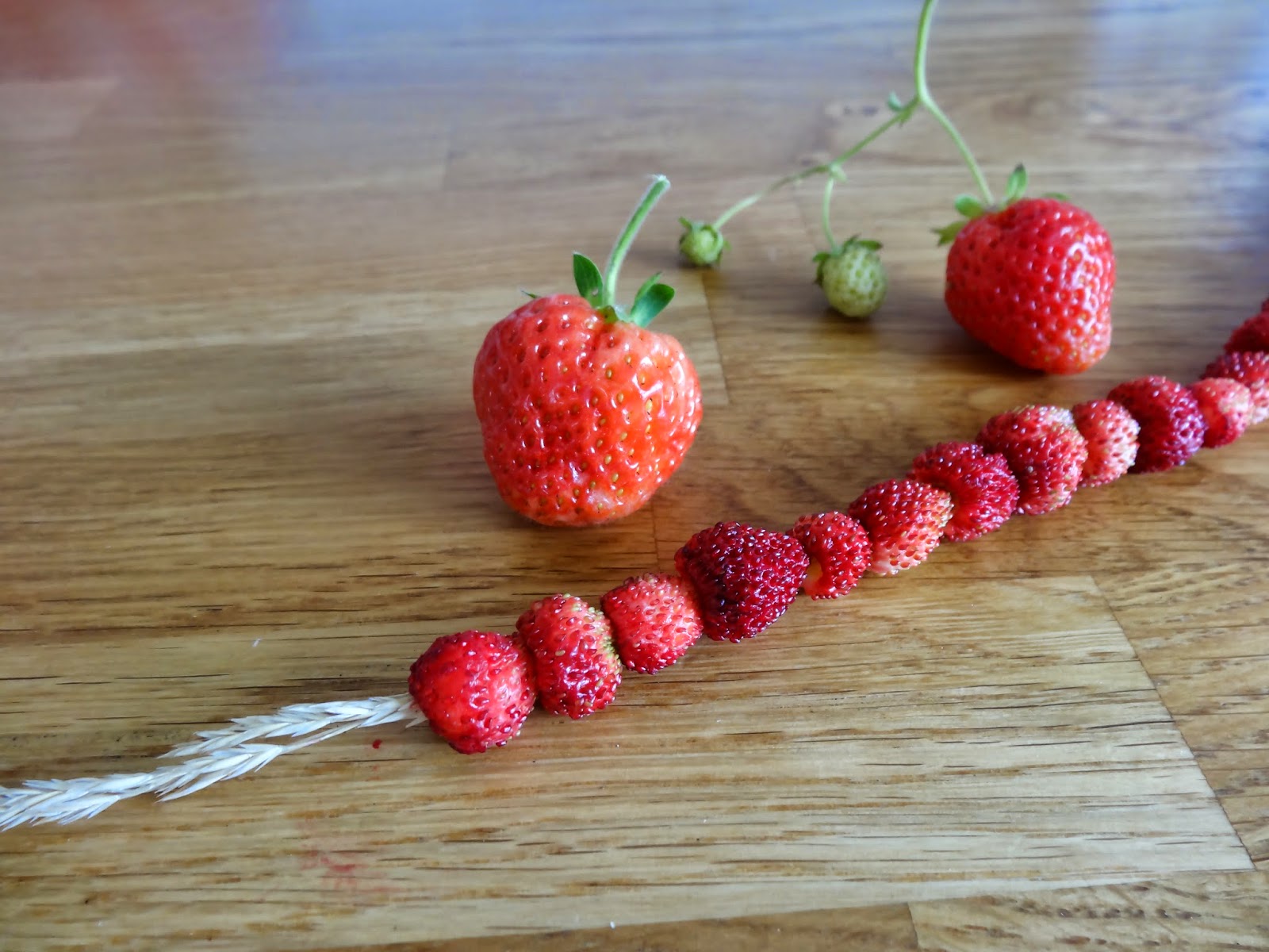 Även fast vädret inte är det roligaste går det att få sommarkänslor ändå. Som idag när jag plockade smultron och jordgubbar från trädgårdslandet och trädde de förstnämnda på strå. Då är det sommar!