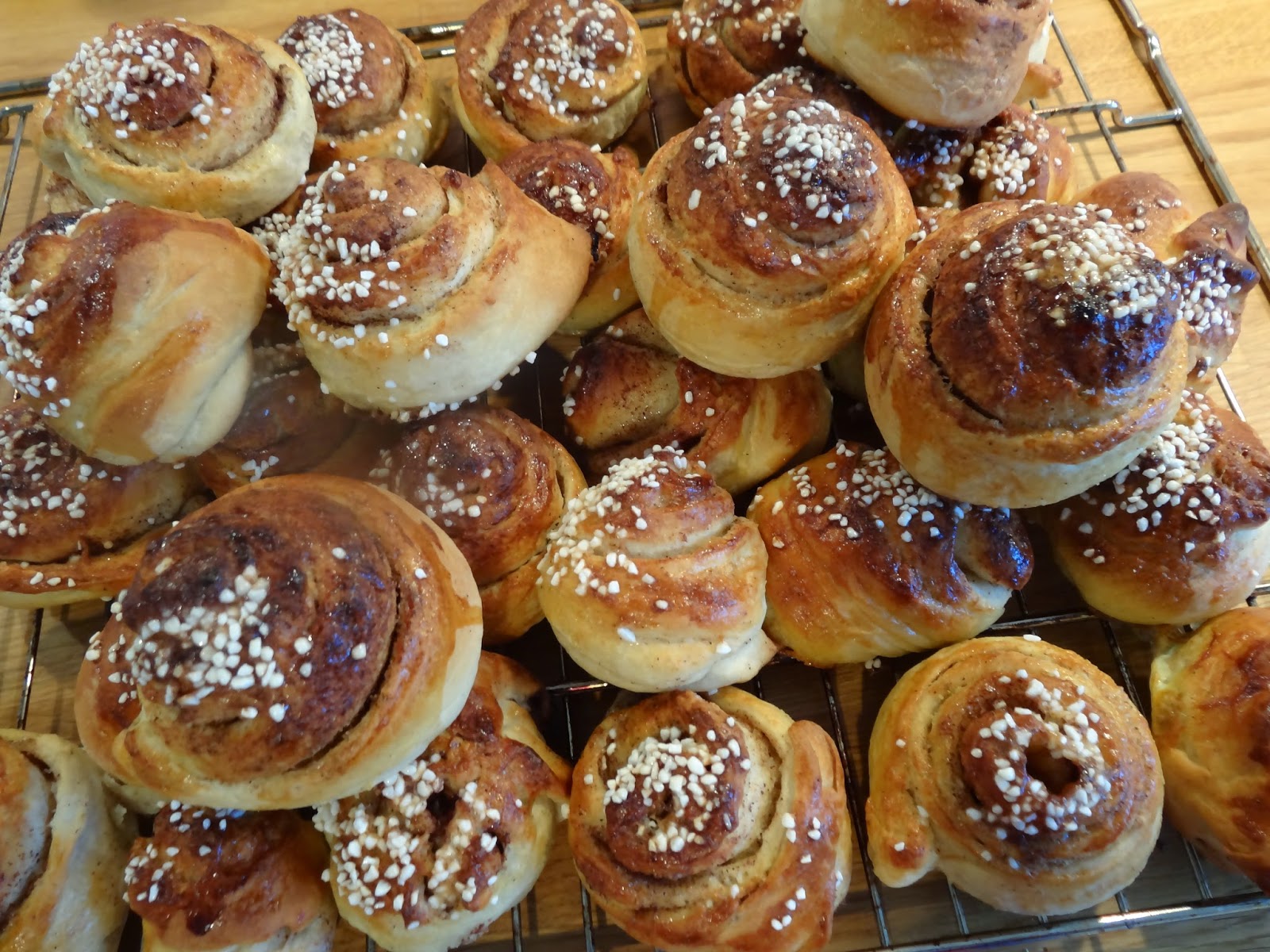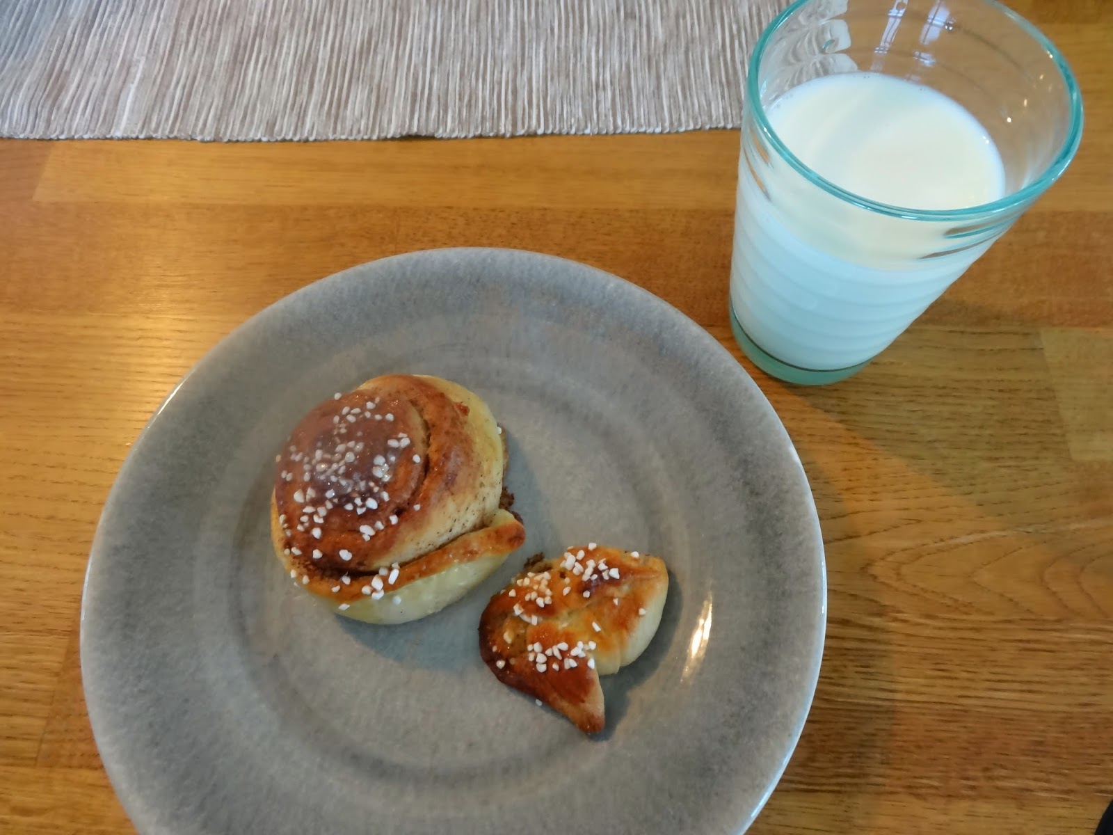 Att fika nybakade kanelbullar med kall mjölk är också somrigt. Det gjorde vi senare idag. Wilmer hjälpte till och bakade och hans bullar blev fina, om än ganska så små. Kul med en bagarkompis i alla fall!