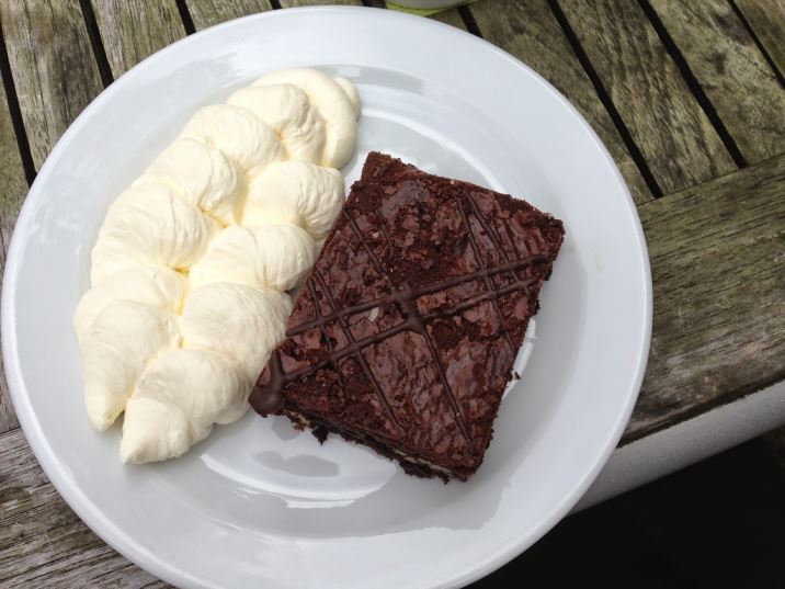 Efter att ha nått tågets slutstation promenerade vi till Taxinge Slott för att fika. Där fanns det en gigantisk tårtbuffé att välja från. När så mycket kakor, tårtor och bakverk finns samlat på samma plats får jag nästan lite avsmak och tappar sugen. Det blir liksom lite för mycket av det goda. Men den brownie med grädde som jag slutligen valde var god så jag ska inte klaga.