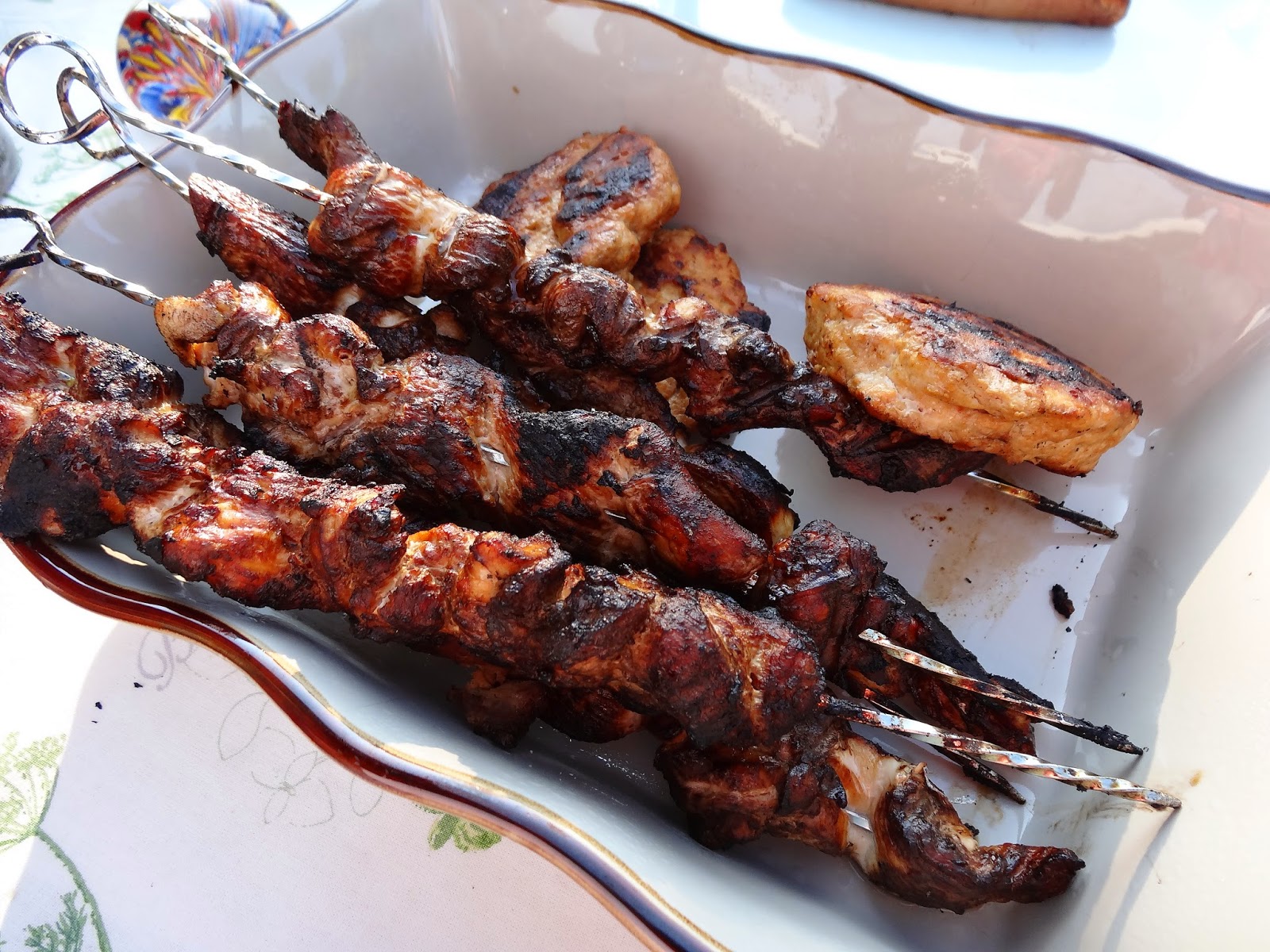 Vi hade ett gäng kycklingfiléer hemma och av dem grillade vi både burgare och spett. Det sistnämnda är ju inte så avancerat; bara att trä bitar av filéerna på spetten och sedan pensla på marinad. Men burgare av egengjord kycklingfärs var första gången jag gjorde idag. Och speciellt svårt var det inte!