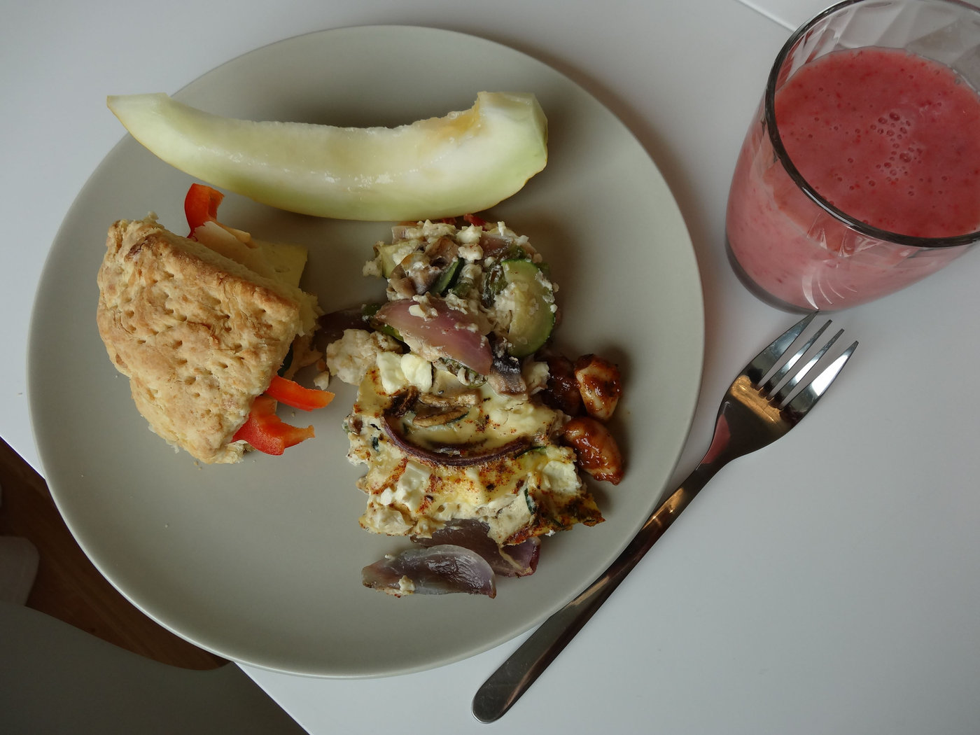 Vi var alltså på en härlig brunch idag på förmiddagen. Min syster stod för den och vi åt av nybakade scones, grönsaksfrittata (Varför gör jag inte det oftare?), jordgubbssmoothie och melon. Sedan lekte sonen i lekparken, som ligger intill.