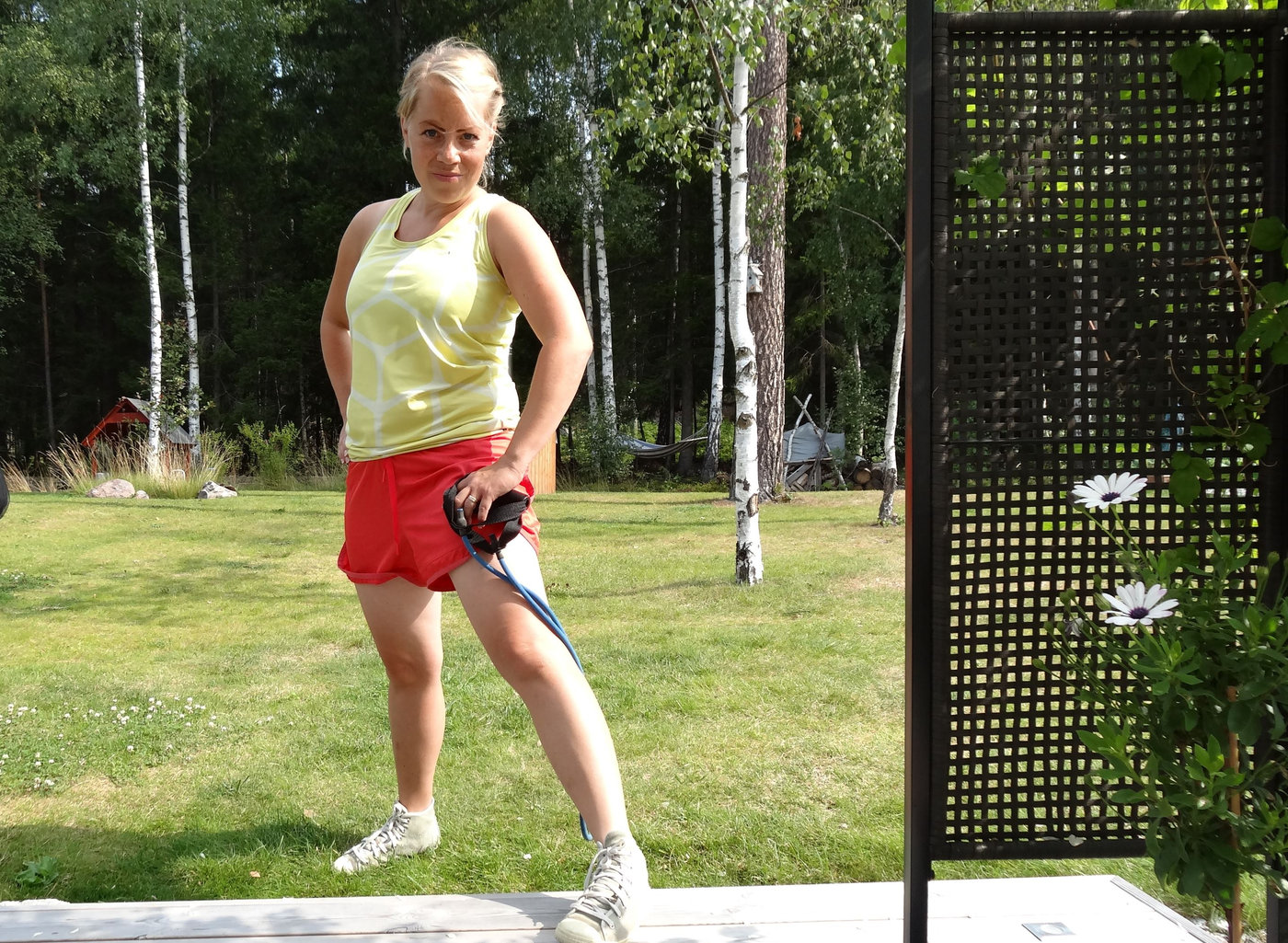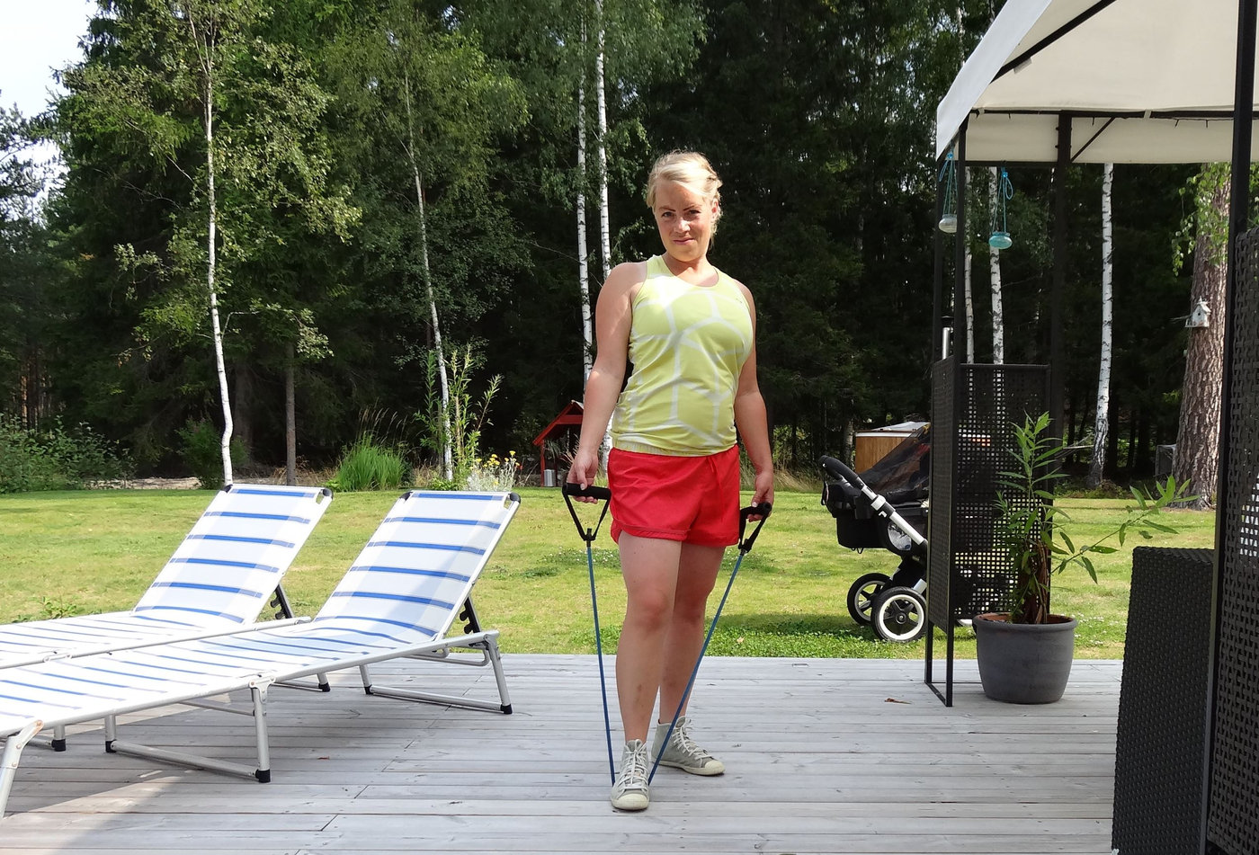 Kanske ser det inte ut som att magen är så stor på bilderna. Men så vågar jag inte visa de bilder, som är minst till min fördel heller. Jag drar in magen på bilderna och de pösiga linnena döljer ganska mycket. Jag är just nu glad för att jag har så pass många träningslinnen i garderoben, som är av de säckigare slaget. Igår körde jag ett lättare styrkepass med gummibanden igen. Träning som är så skön att göra och som gör gott för mig. Jag tar en dag i taget, njuter av livet som tvåbarnsmamma och hoppas att den säck jag har till mage kommer att försvinna alltmer. Och gör den inte det så tänker jag fortsätta vara tacksamt för allt jag har. Men jag tycker att det är sorgligt att jag (och säkert många med mig) ska behöva ha dessa tankar.