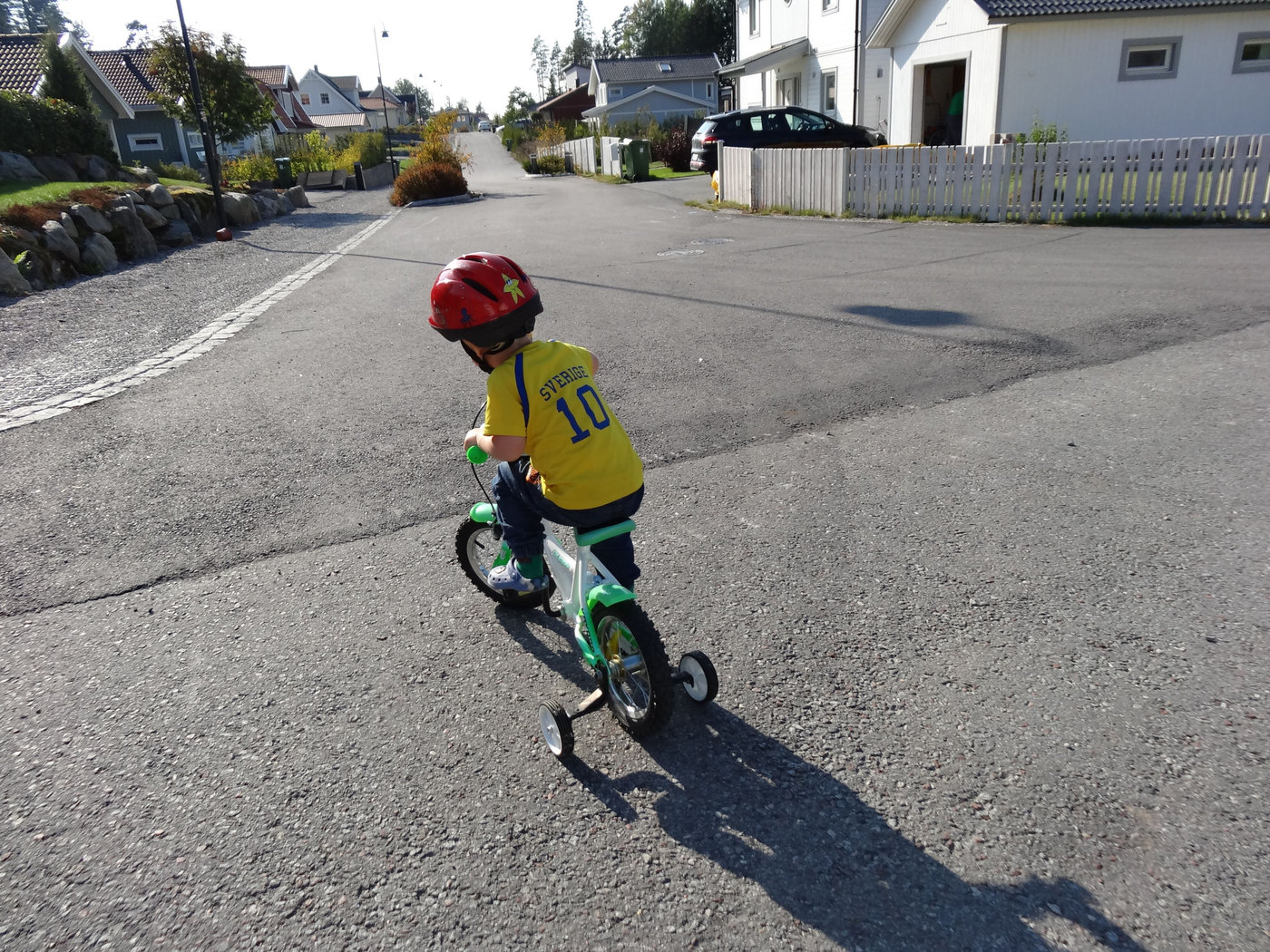 Sedan fick han bestämma vad vi skulle göra utomhus. Han valde cykling på den ”stora” cykeln och jag gick runt med vagn och kaffe under tiden. Vi var ute en bra stund och jag fick bestämma sysslorna för en stund när vi gick en runda runt huset och plockade ogräs.