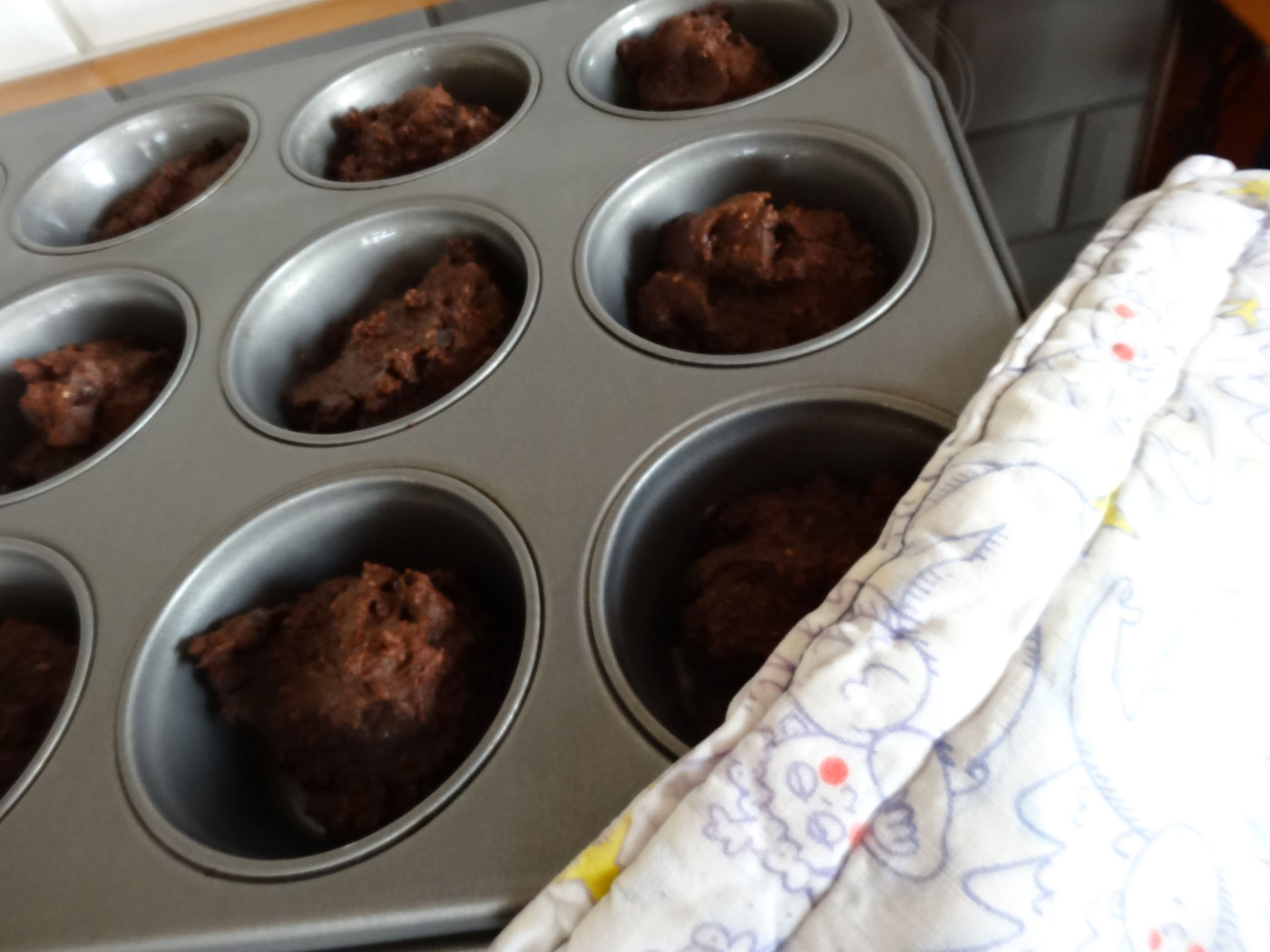 Senare på eftermiddagen föreslog jag bakning och det ville han vara med på. Så han hjälpte mig att mixa ihop en slags chokladmuffins, som jag inte gjort tidigare. Jag har fått lite dille på att baka med bönor och så blev det denna gång också. Har inte provsmakat dem ännu, men om de blev goda så kommer receptet senare i helgen.