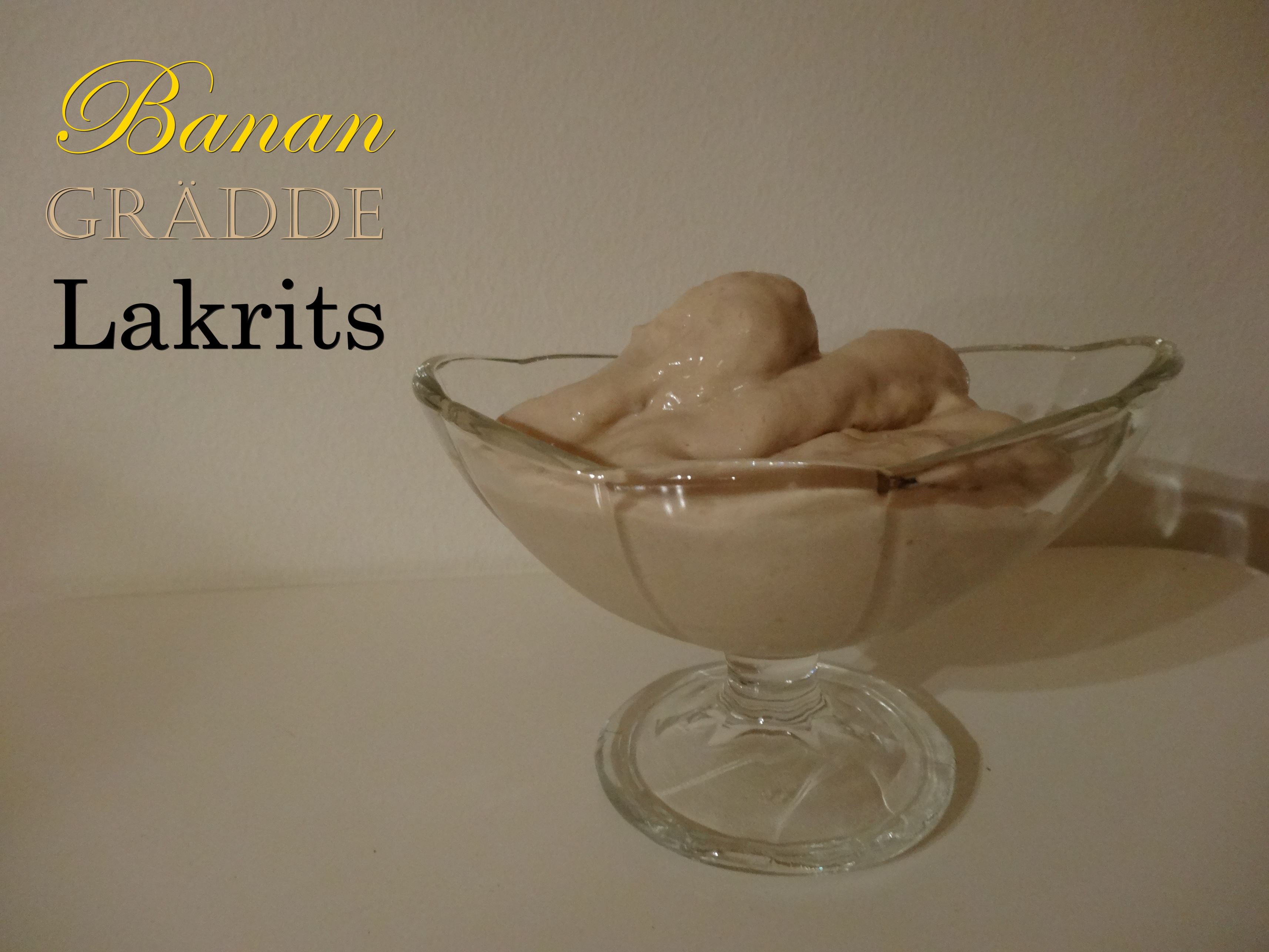 Jag mixade två bananer med ca en deciliter grädde samt hade i en knivsudd lakritspulver för lite mer sötma. Ner i en burk och in i frysen ett par timmar. Sedan var den så där rinnigt krämig i konsistensen och super god. Nästa gång kanske jag testar med kokosmjölk eller kokosgrädde samt har i lite kakao också. Det kan jag tänka mig också blir en hit!