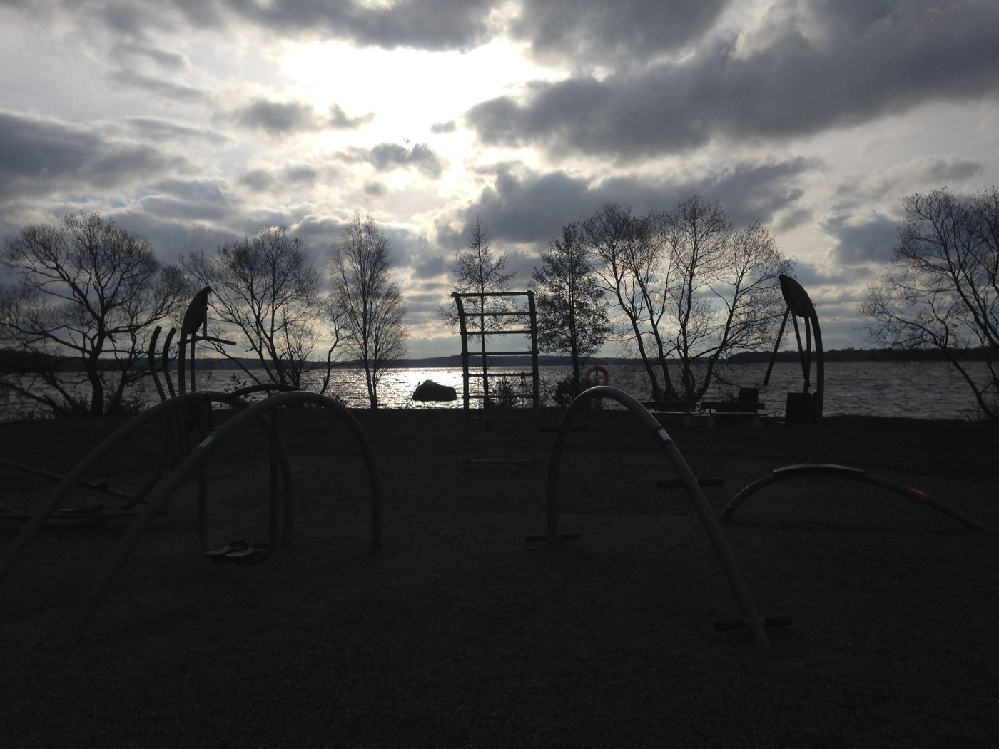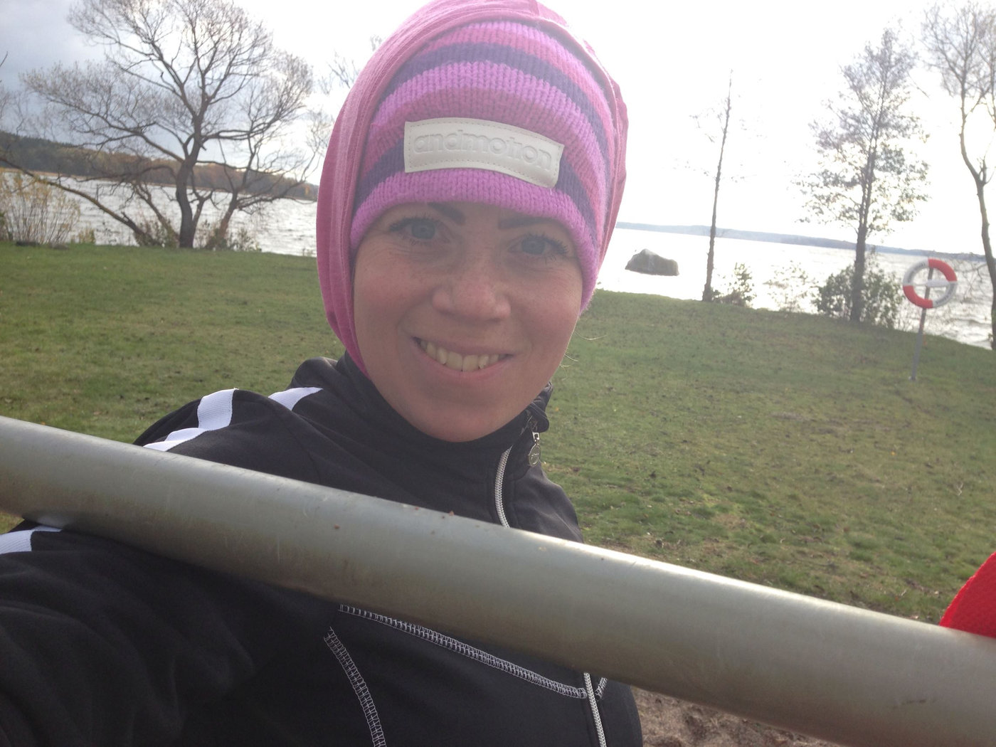 Efter förmiddagens mammaträningspass valde jag att stanna kvar vid utegymmet och träna en stund på egen hand. Visst fick jag lite träning medan jag tränade mammorna, men inte på den nivå som jag vill träna på, och jag kände att jag hade mycket kvar att ge när passet var slut. Fastän man jobbar med träning krävs det en del motivation och planering för att få till sin egen träning. Och jag kan erkänna att det inte var jätte lockade att stanna kvar och träna eftersom det blåste riktigt kalla vindar från sjön idag.