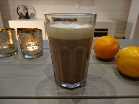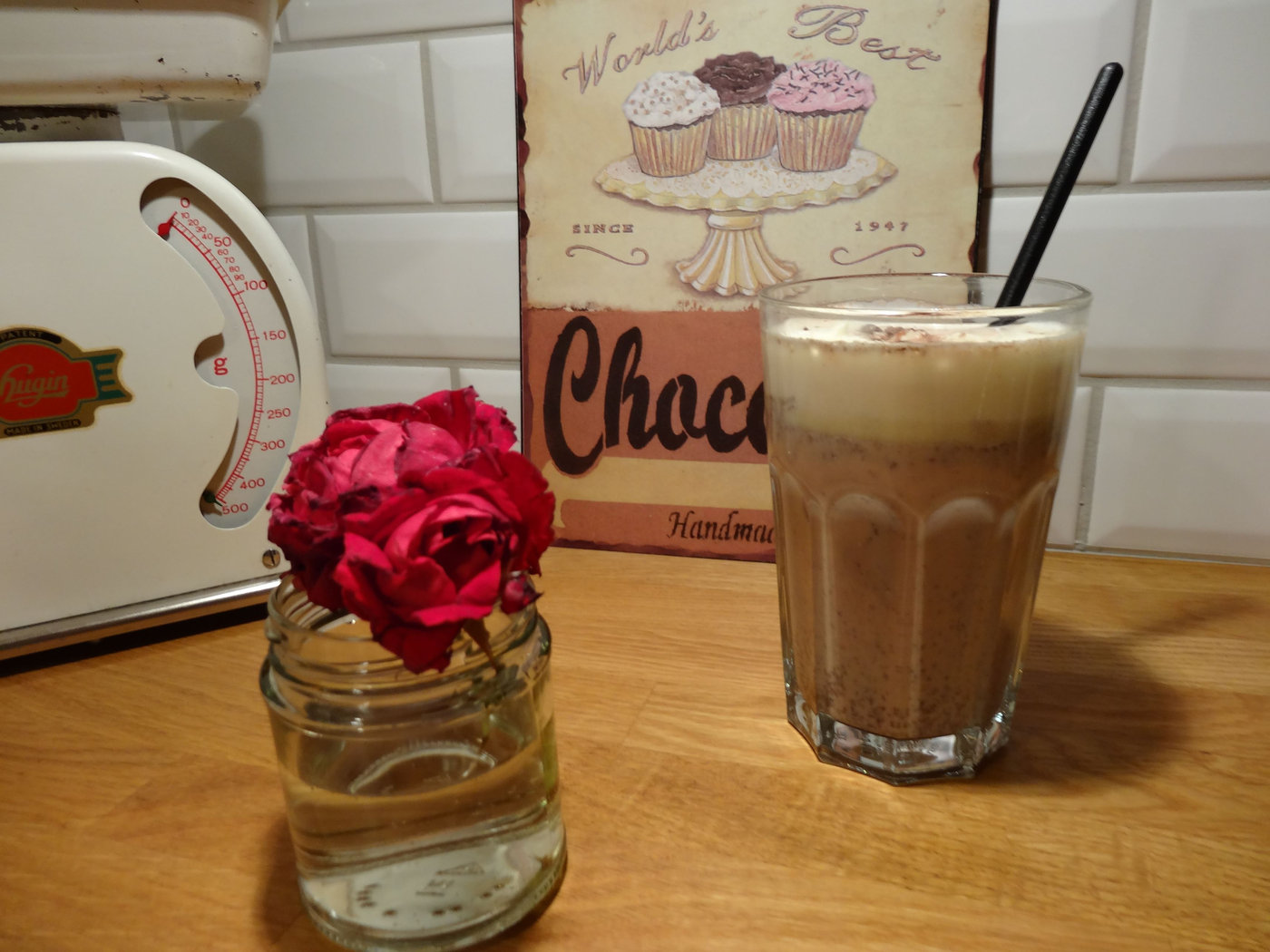 I kvällens kopp har jag varm mjölk med någon tesked kakao och någon tesked carobpulver samt lite lakritspulver och kanel. Extra lyxig är den med vispad grädde på och kakao toppen.