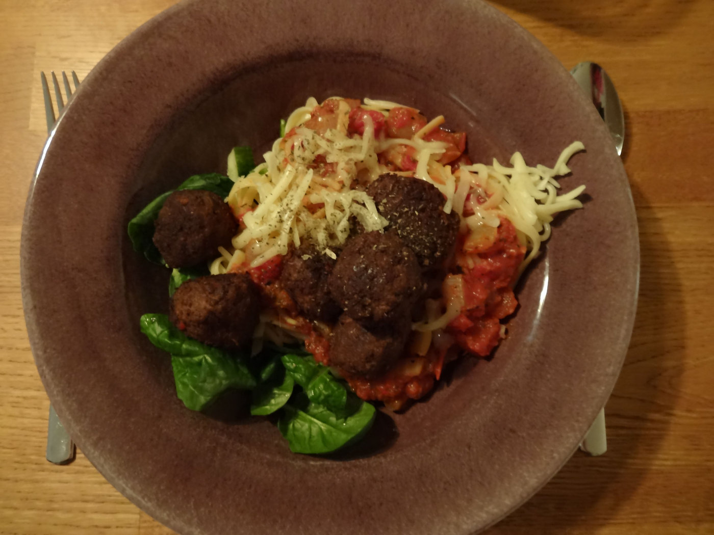 Köttbullar går att få på lite olika sätt. Hos oss äter vi oftast köttbullar tillsammans med kokt potatis, lingon och gräddsås. Men när jag skulle laga köttbullar härom kvällen och vi inte hade potatis hemma lagade jag den med spagetti och kryddig tomatsalsa istället.