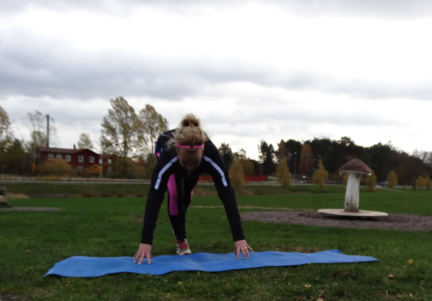 Innan dagens mammaträningspass körde jag några övningar på egen hand. Bland dem tränade jag militären och sprintern, båda ganska avancerade övningar, som kräver ordentlig styrka och kroppskontroll. Inget jag rekommenderar nyförlösta kvinnor, men om man har tränat upp en bra styrka i bål och ben kan man testa dessa övningar.